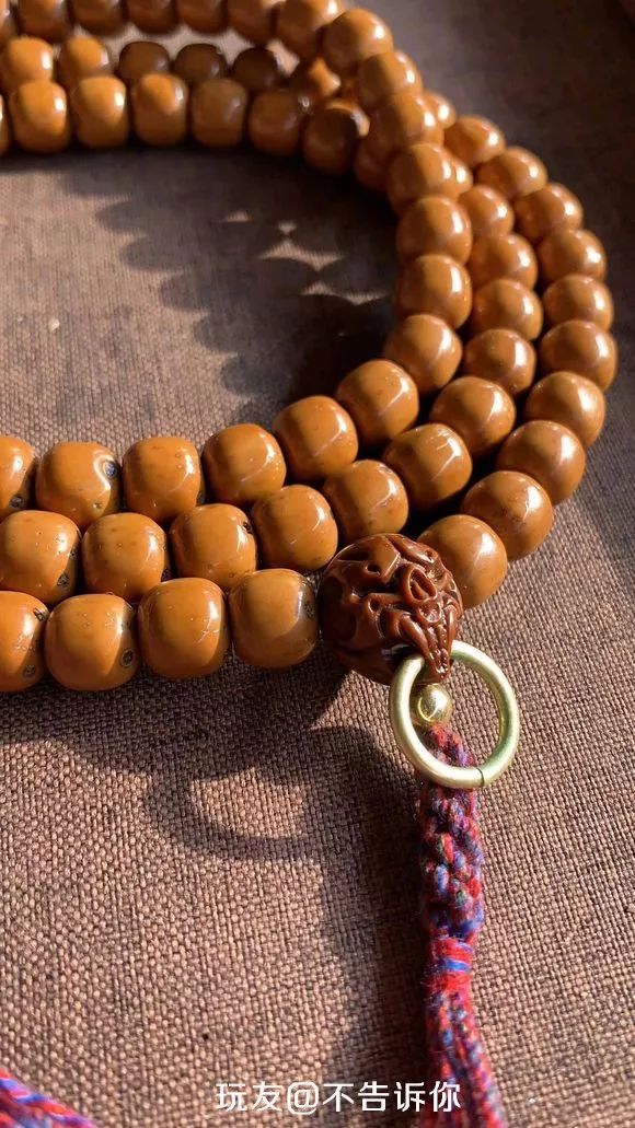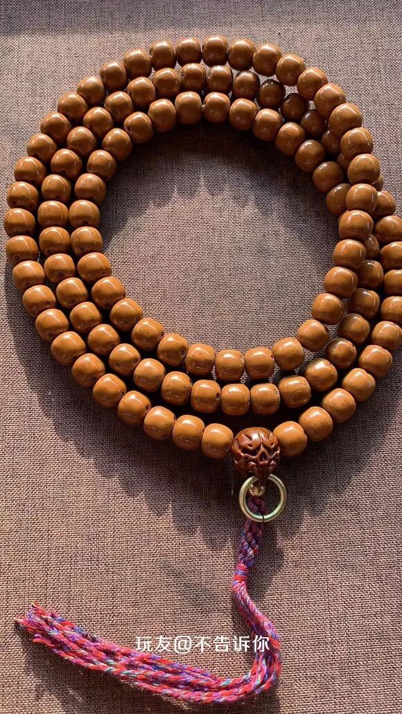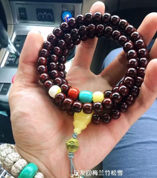 玩友的一条紫金鼠108光珠,盘了三年,盘出了包浆特别好看的玻璃底。