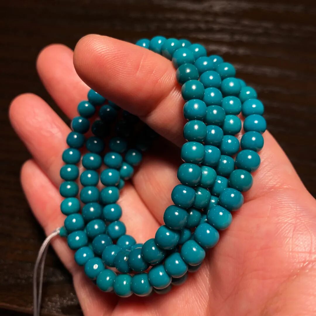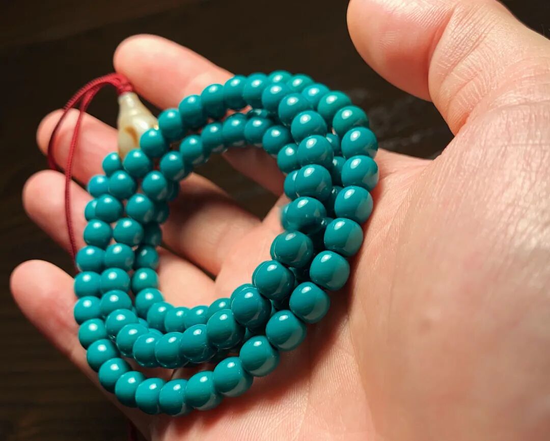 果冻料绿松石,即便随便盘盘,也能变色均匀、玉化透亮。而那些瓷度高,但料质不细腻的绿松石,即便悉心盘玩,依然还会变花、反白点。