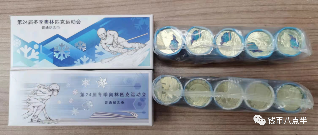 从路透图来看,两枚冬奥币的包装是分开的,盒币内装的还是5卷卷币,一卷20枚,卷币还是纸卷包装。