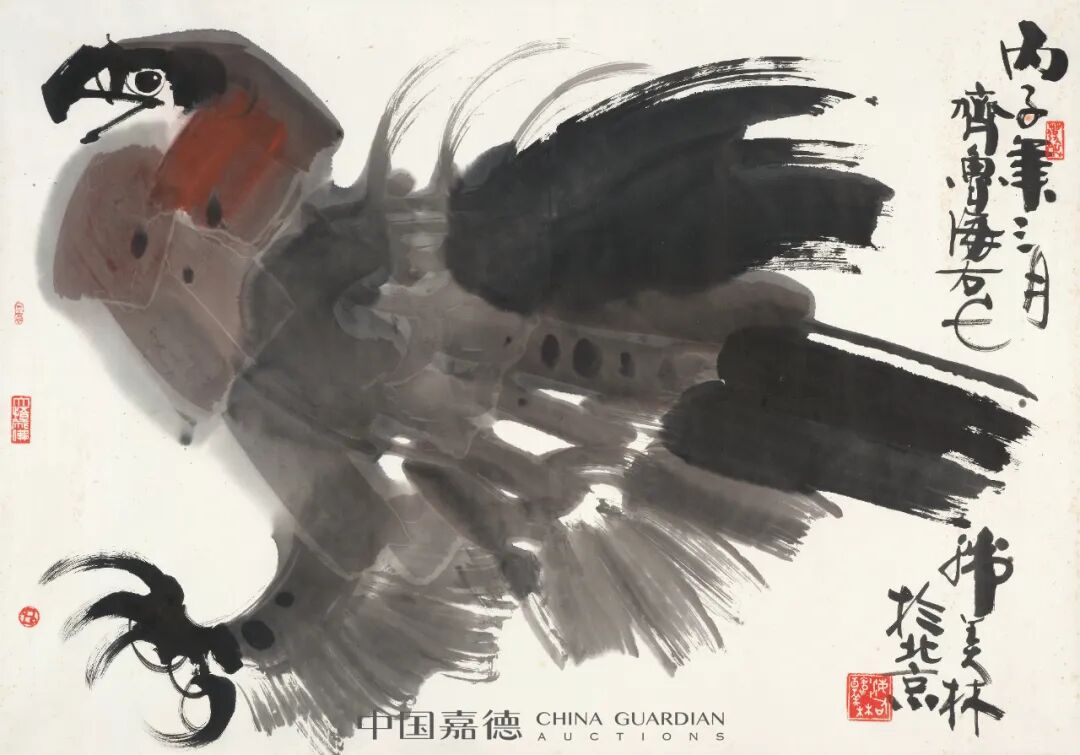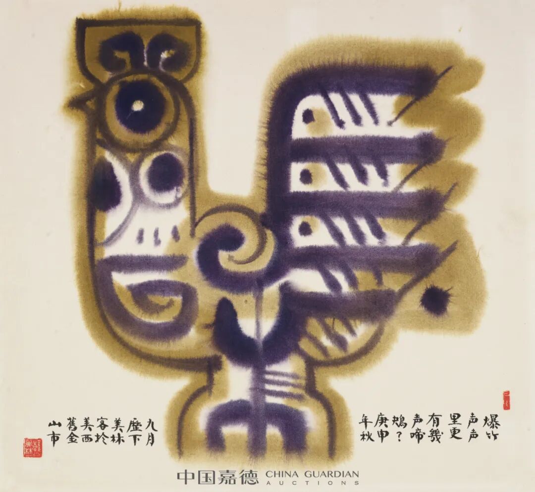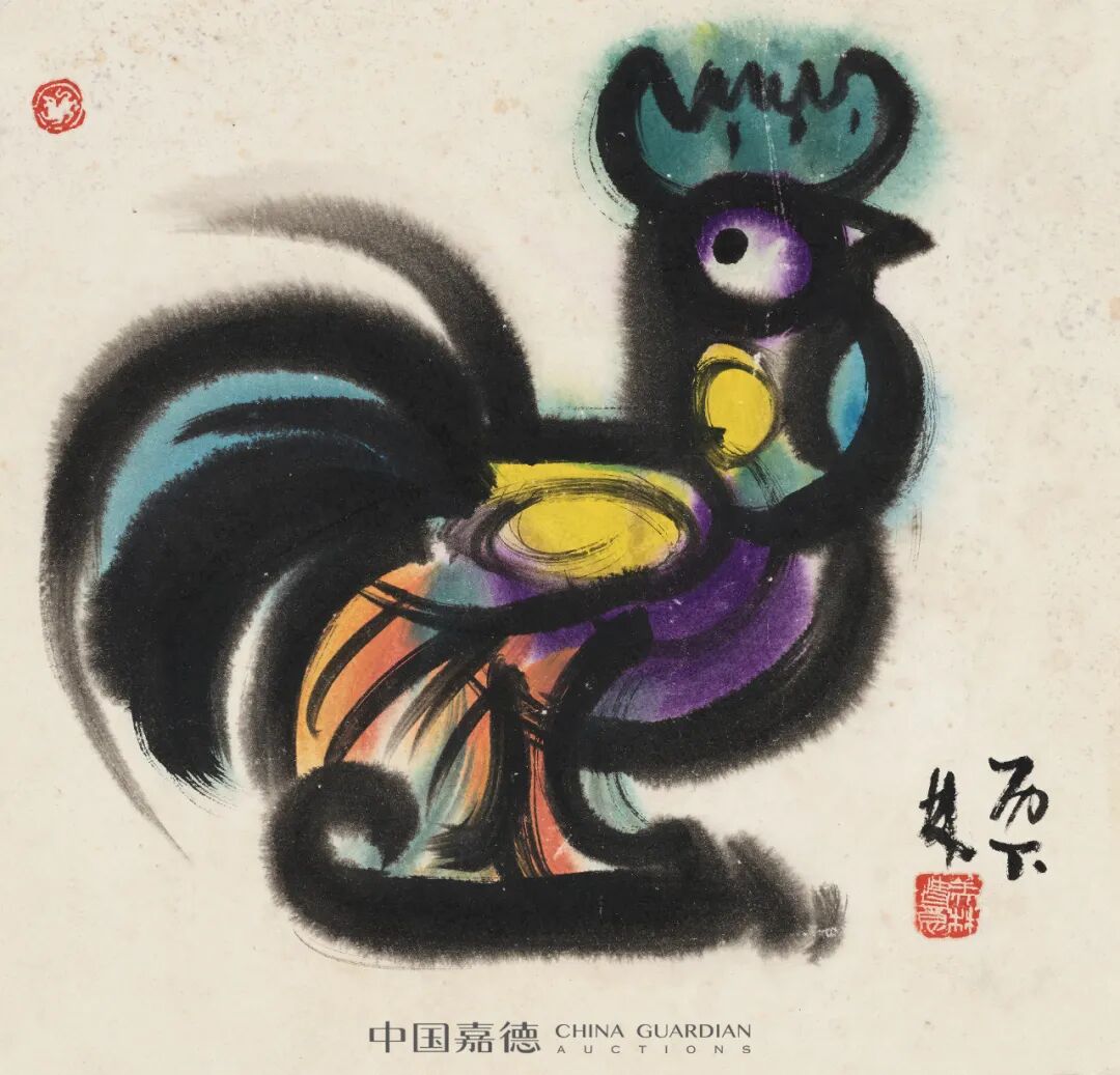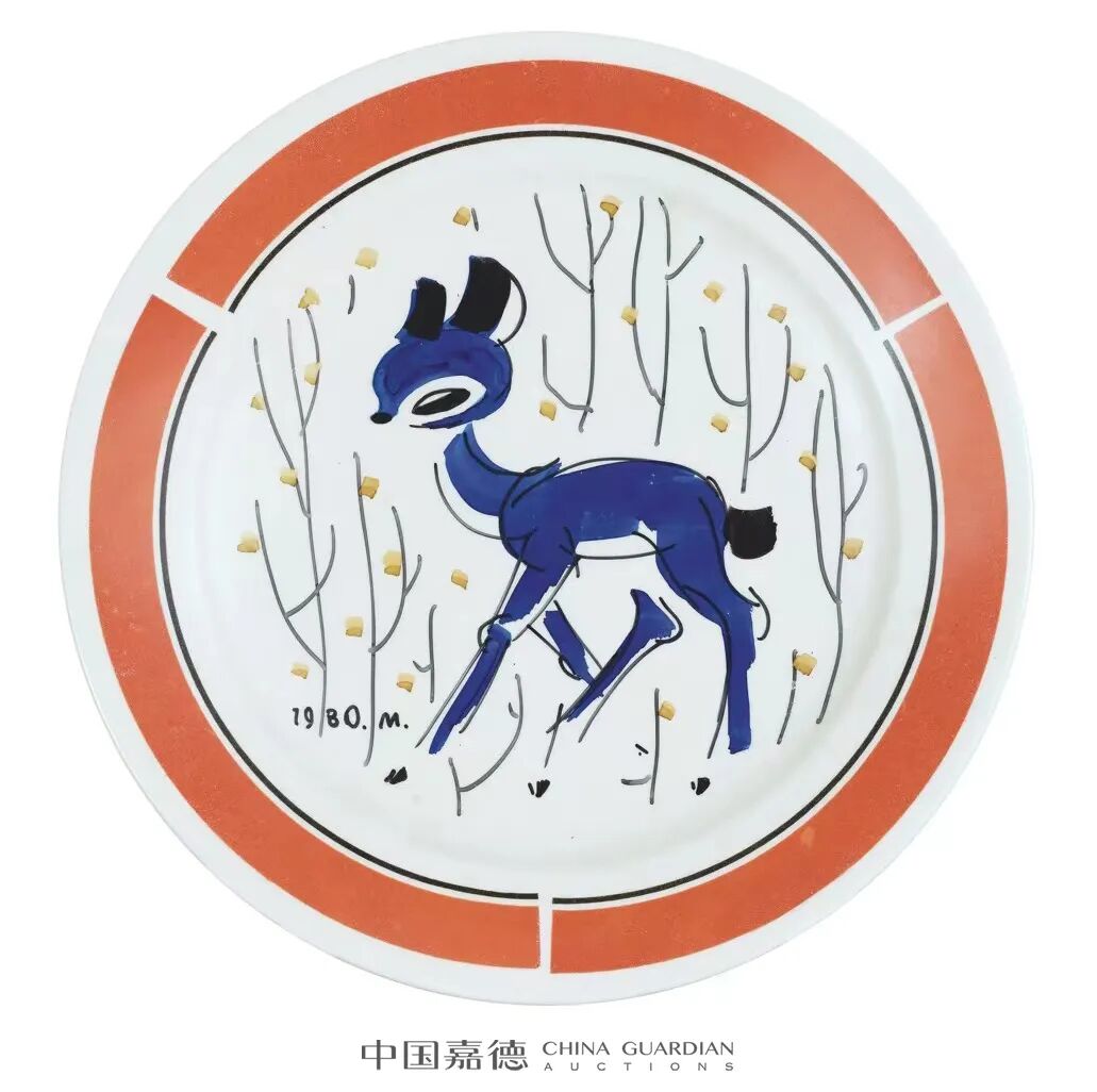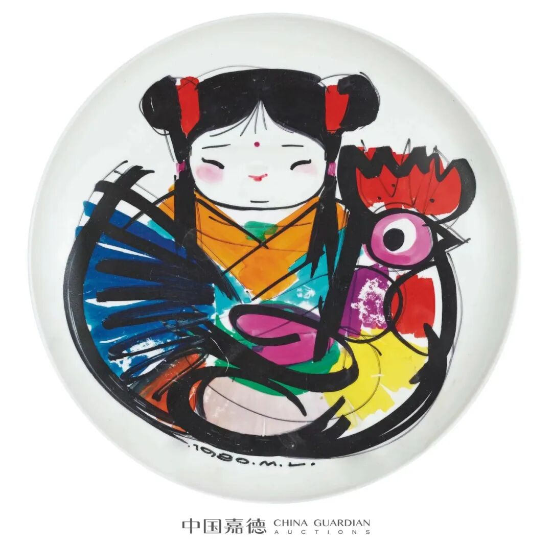 韩美林的艺术创作博采众长,他善于从中华传统文化以及民间艺术中吸取精华,将细致入微的观察和朴素的文化情愫灌注到他那独特的装饰性风格当中,在艺术形象的选取上,韩美林多描绘各类动物题材;在形象塑造上,他结合岩画、民间绘画装饰样式的表现手法,抽象而传神,凝练而生动,使画面具有朴素的民间审美精神和浪漫洒脱的情感内核,观之皆受感动。本季秋拍中国当代书画精选15件韩美林佳作上拍,其中两件创作于八十年代的瓷盘彩绘色泽亮丽,工艺精良,因保存不易,存世量稀少,是藏家不可错过的精品。