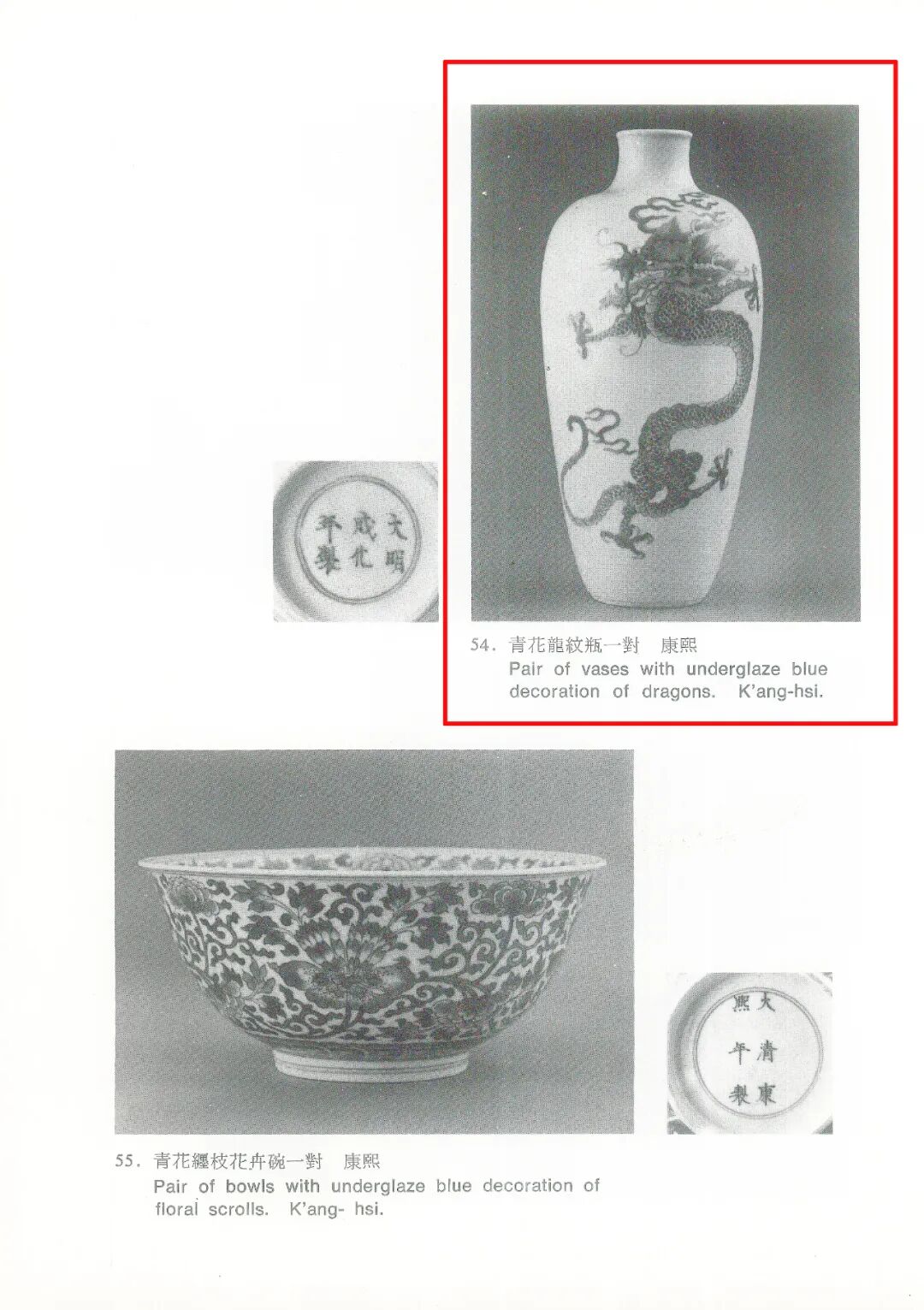 本品器型较为少见,应为耿宝昌先生在《明清瓷器鉴定》中提及康熙时期新创之“长颈荸荠扁瓶”一式。通体施青釉,釉下暗刻海水云龙纹,所刻龙纹,身形矫健,五爪怒张,具有典型康熙官窑龙纹特征。而其亮点在于暗刻行龙之双眸,皆以青花点染而成,双眼怒目圆睁,迥然有神,可谓本品之点睛之笔,较为罕见。足底青花双圈内书“大清年造”四字双行楷书款。公私所藏清早期官样初探之器落“大清年制”四字多见,而落“大清年造”款者则较为少见,所用“造”字落款,似乎仍保留了晚明落款组字的遗风,颇有明清交替之际,官窑制度创立之前的初探之感。据耿宝昌先生《明清瓷器鉴定》所言“据文献记载,康熙十九年九月,才正式于景德镇御窑厂烧制御用器,所以早期器物多是民窑所烧,俗称‘客货’,但可能有一些官窑器。这时的瓷器少署帝王年号款,而多署干支纪年款、堂名款和画押等标志,青花色泽浓重,字体较大。”而本品“色泽浓重,字体较大”的落款即符合这一时代特征,结合此式康熙新创之“长颈荸荠扁瓶”器型,瓶体所饰繁复华丽,官样十足的海水云龙纹装饰,故本品当为康熙早期御窑制度确立之前的官窑上器,较之普通康熙官窑,更为稀少,具有独特的学术价值及收藏价值。![]()
