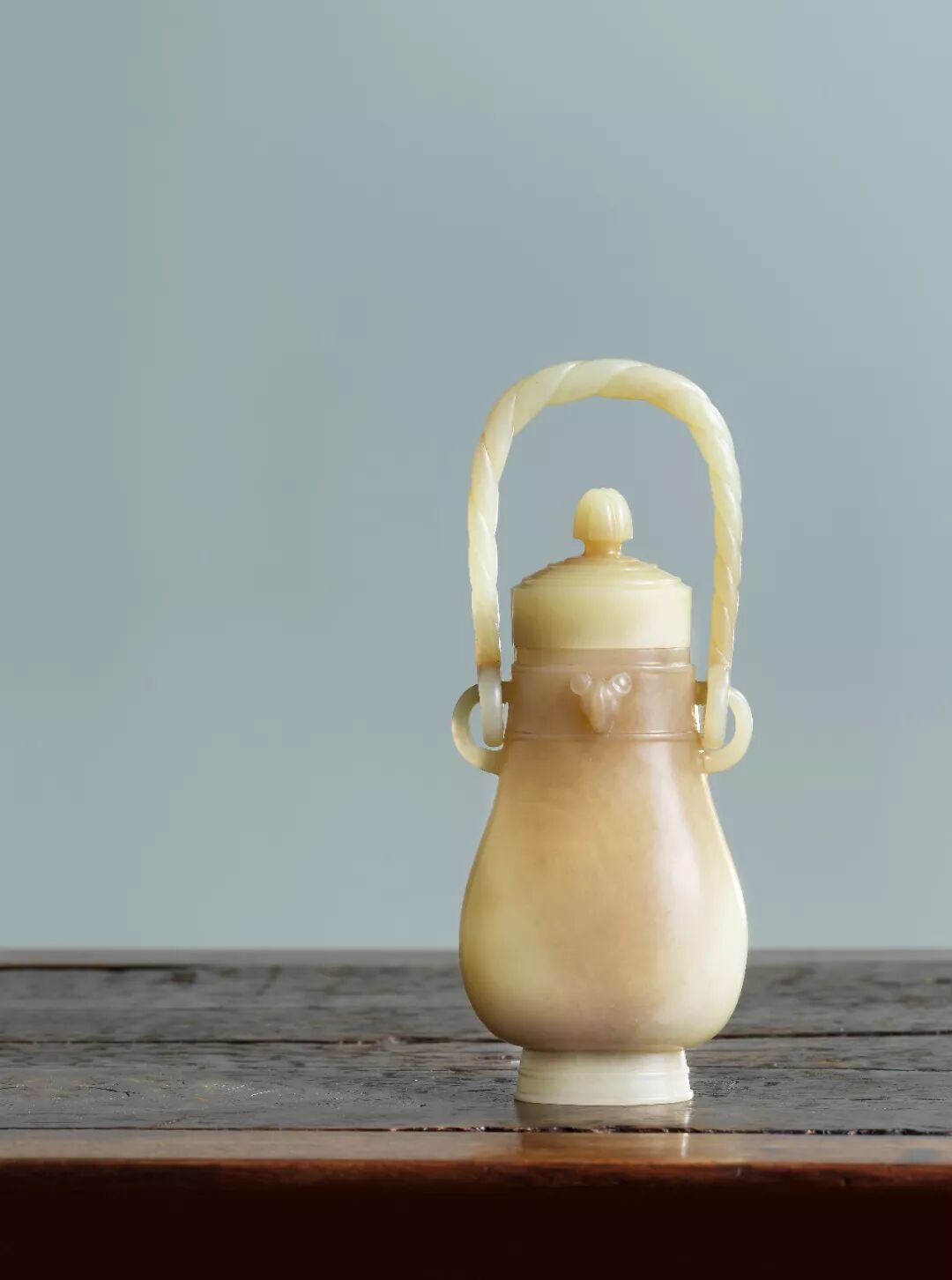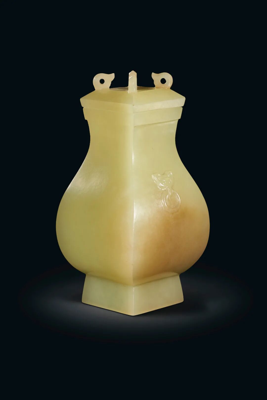 清乾隆 御制朱彩镌黄玉雕提梁禾亭卣 「乾隆年製」篆书刻款