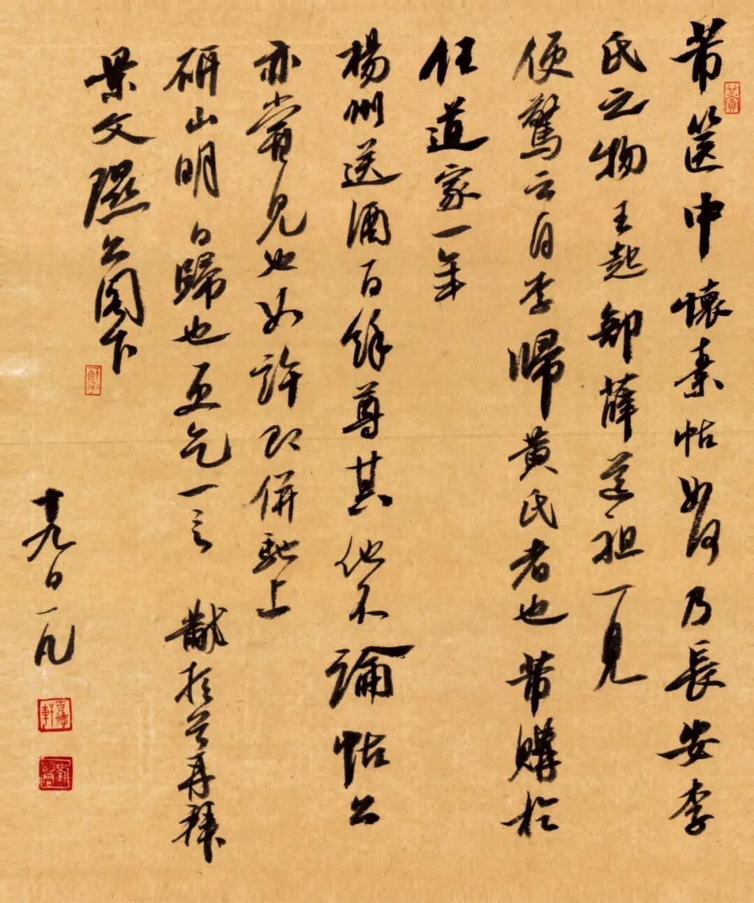 刘期君的书法却给人一种不凡的品味。那令人熟悉的字体风格,让我们不得不想起一千年前那几位中国文化史上首屈一指的米芾大文豪苏东坡以及赫赫大名的黄庭坚。