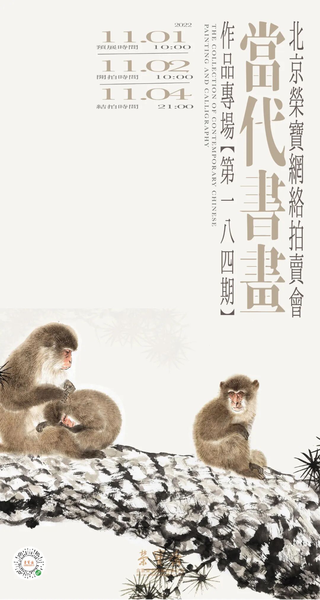 北京荣宝·当代书画作品专场网络拍卖会(第一八四期)将于11月1日10:00-11月2日10:00开启线上预展,并于11月2日10:00开拍,11月4日21:00结拍。