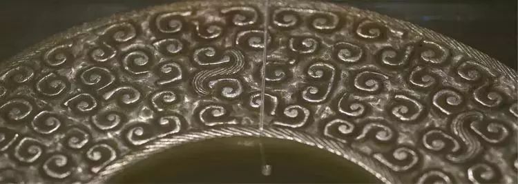 ▲曾侯乙和田玉龙形勾连毂纹开口臂箍