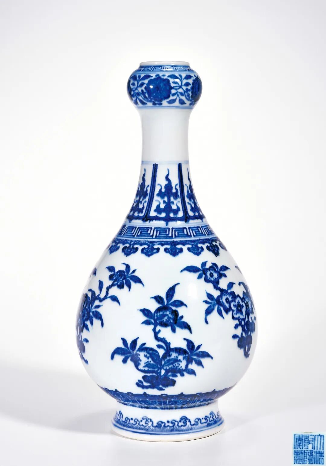 Lot 2036清乾隆青花折枝瑞果纹蒜头瓶,因其品质上乘,起拍价由800,000元,最终溢价近3倍,以2,070,000元成交,名列本场前三末席。