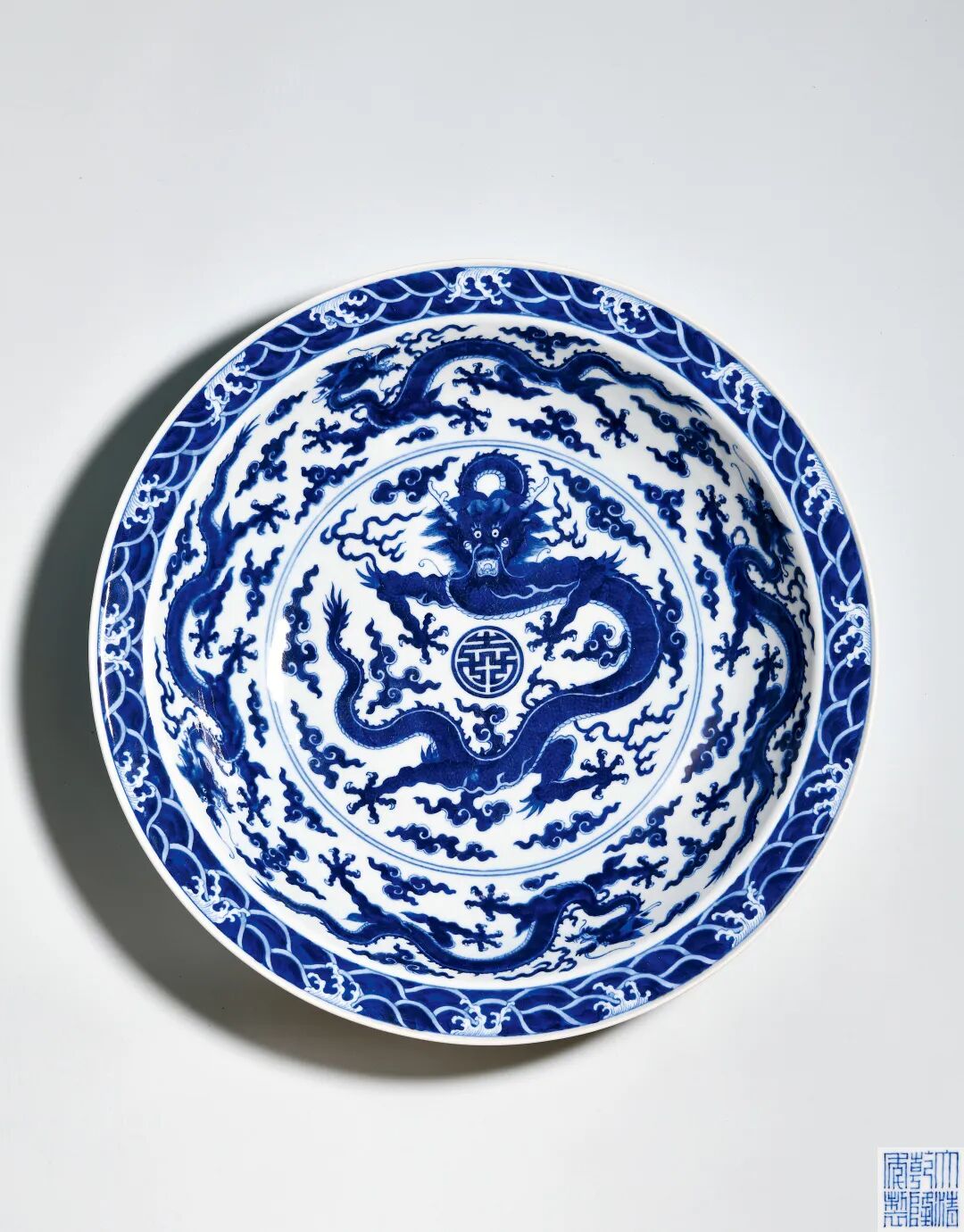 本次中贸圣佳上海艺术品拍卖会古董珍玩专场“藏珍—古代瓷器”版块可谓精益求精,为藏家遴选出116件有特色,质量佳的古代瓷器,在此之中重点器物以宫廷御窑瓷器为主。成交96件,总成交额3929.9万元,成交比率近83%。其中Lot 2035号拍品,来自北卡罗来纳州威尔明顿私人收藏,清乾隆青花海水江崖云龙捧寿纹大盘最受关注,小程序围观次数达1379,从2,600,000元起拍,最终以成交价5,175,000元,在专场拔得头筹,同时也位列本次上海拍卖总成交额之榜眼。