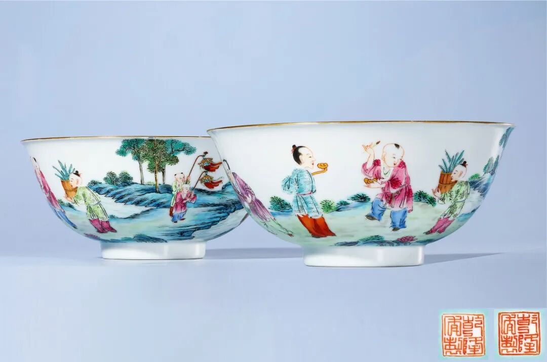Lot 2040清乾隆粉彩婴戏图碗一对表现亦为出色,故宫博物院有同类藏品,最终以成交价4,140,000元位居本场第二。