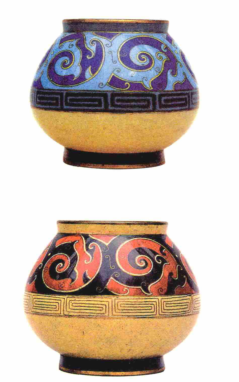 但林徽因并不满足于此,她希望景泰蓝的使用范围能够更加扩大,可以与当时的大众购买力相适应,真正摆脱“皇家工艺品”的标签,走进平常百姓的生活。景泰蓝因材料限制,不宜作为装水的容器,甚至被溅到水也不合适,因此,她指导设计了一批带盖的小罐、小盒,可以用来装纽扣、针线、糖果等杂物。