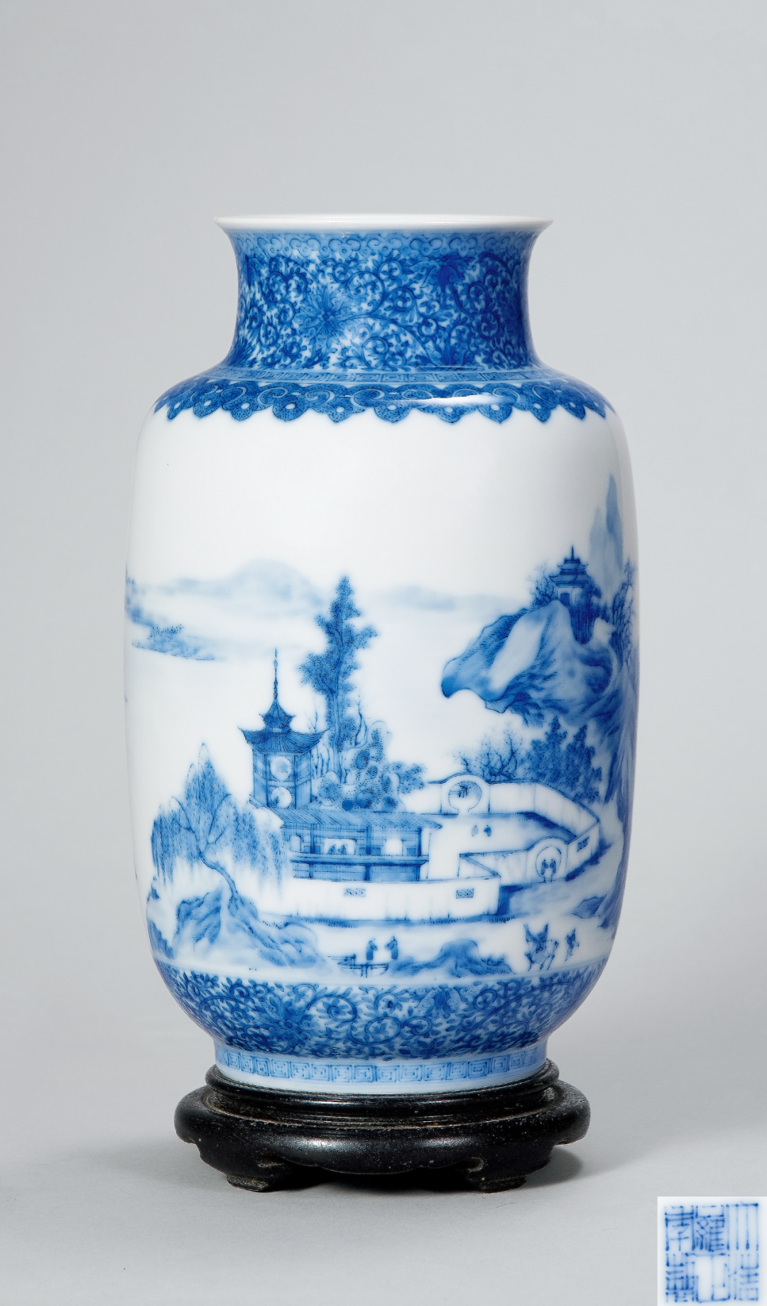 此瓶瓷胎细腻,温润如玉,为吴蔼生之“玉绫窑”。画面通景布局,整体笔法细腻,但不失灵气,能看出青花大王王步的影子,惜无款,只能作疑似王步早期在吴蔼生瓷庄仿古青花之精品。