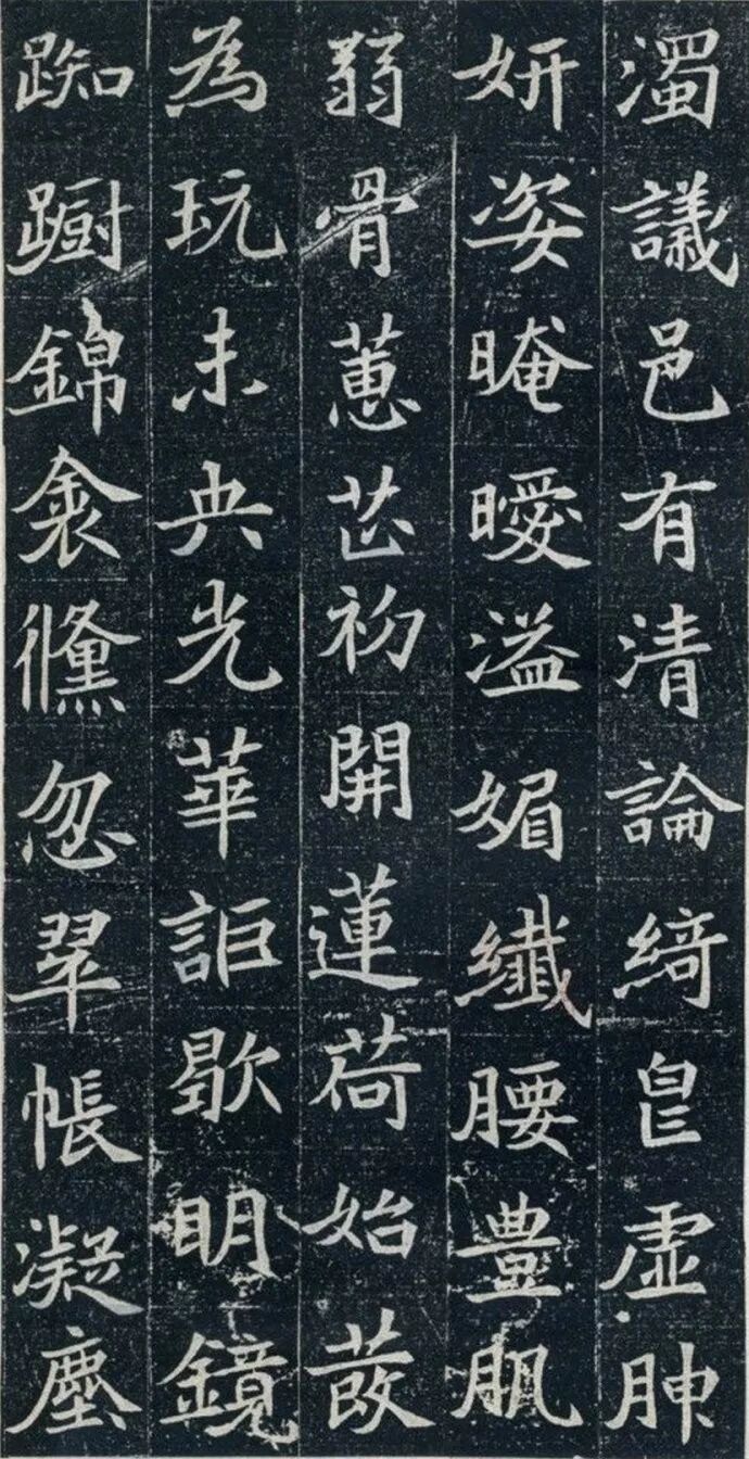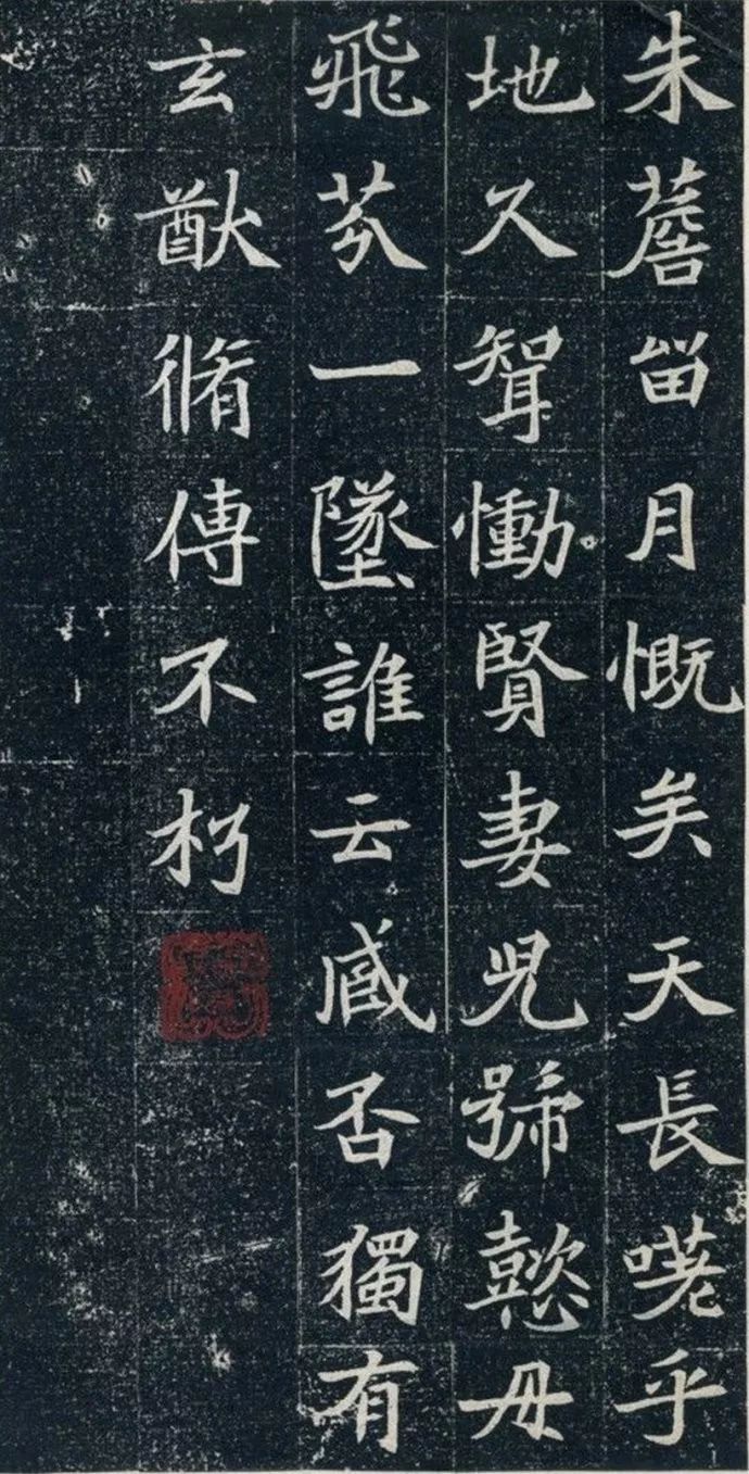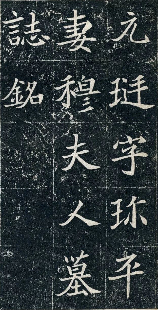 《元珽妻穆玉容墓志》北魏神龟二年(519年)刻,全名《魏轻车将军太尉中兵参军元珽妻穆夫人墓志铭》,共二十行,每行二十个字,一九二二年河南洛阳南陈庄附近出土,曾为于右任所收藏,现藏陝西西安碑林。墓志字体体势略带扁方,结体端严简古,平正中寓险绝之态,笔致劲健飘逸,刚强中显温婉之姿,整体秀逸端雅,开唐楷先声。