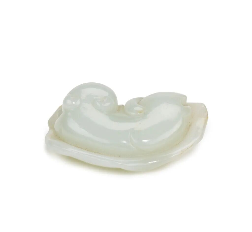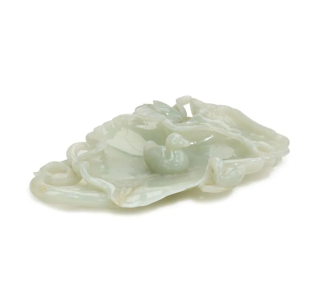|清十九世纪 青玉荷塘鸳鸯笔舔|