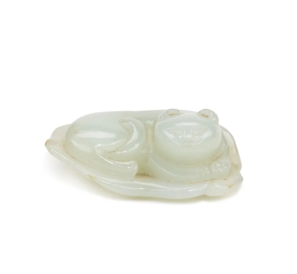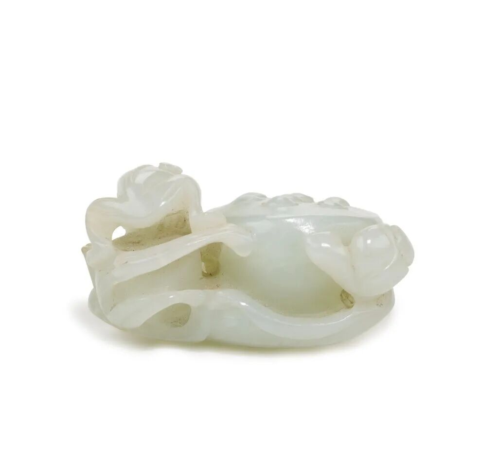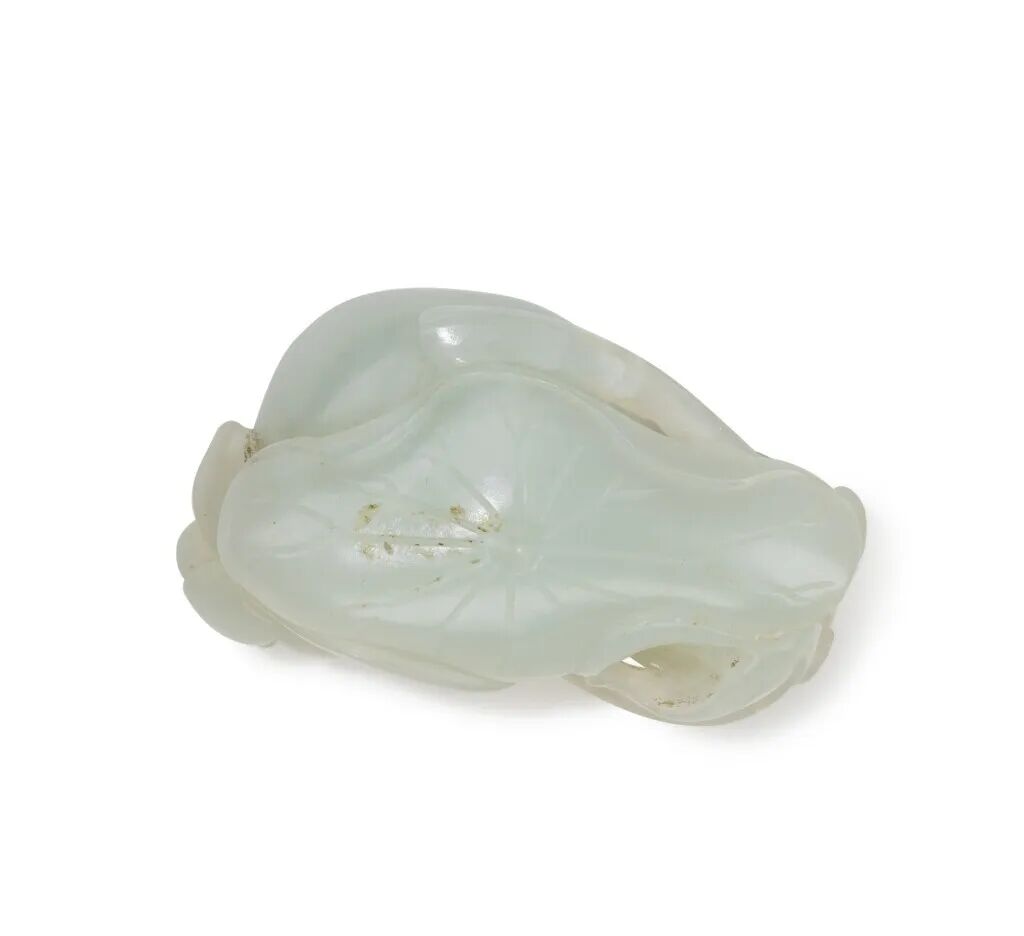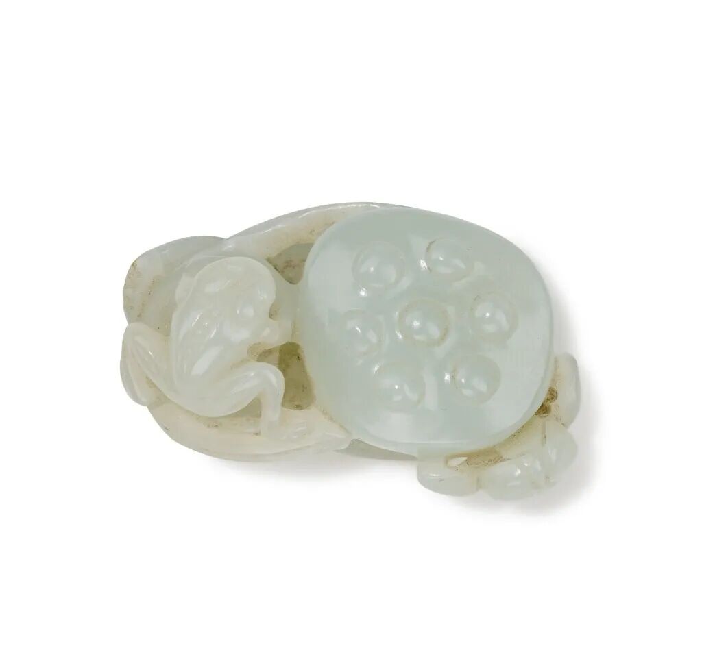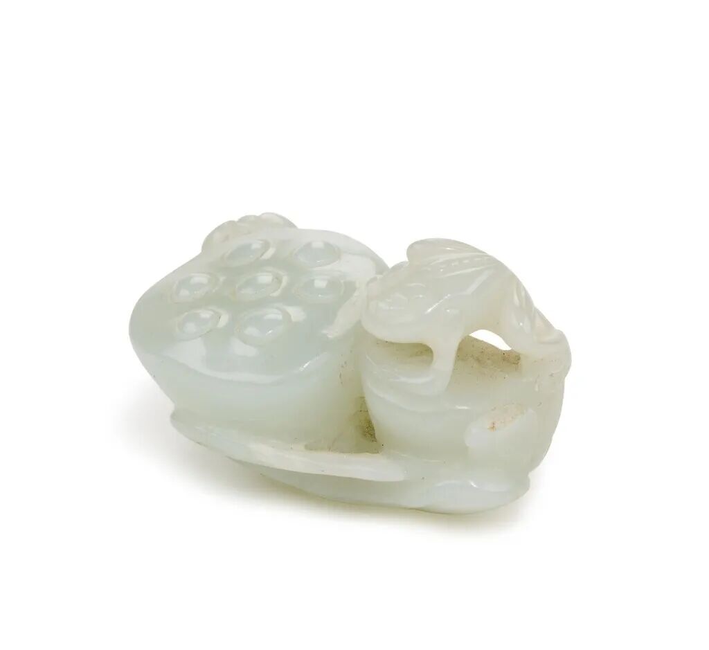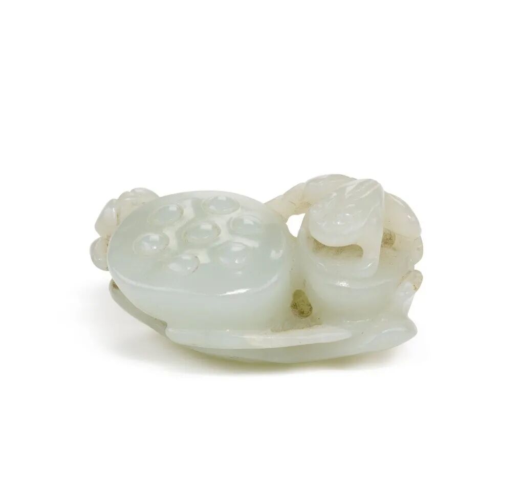 |清十九世纪初 青白玉莲蓬蟾蜍摆件|