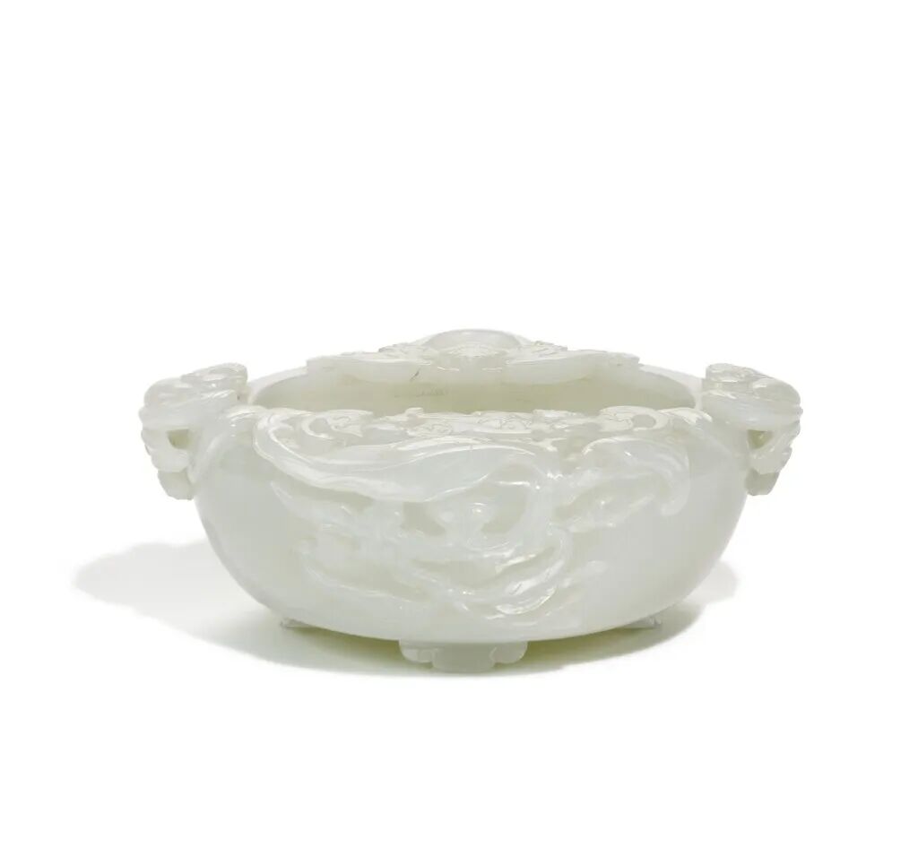 本次拍卖展示了多件杰出的中国艺术品中的玉器艺术,这些艺术品以其永恒的美学为特征,体现了最精致的情感。重点展品包括宋 青白玉花式龙耳杯,以10万英镑落槌,清乾隆 白玉祥蝠瑞芝纹洗以8.5万英镑落槌价位居第二!