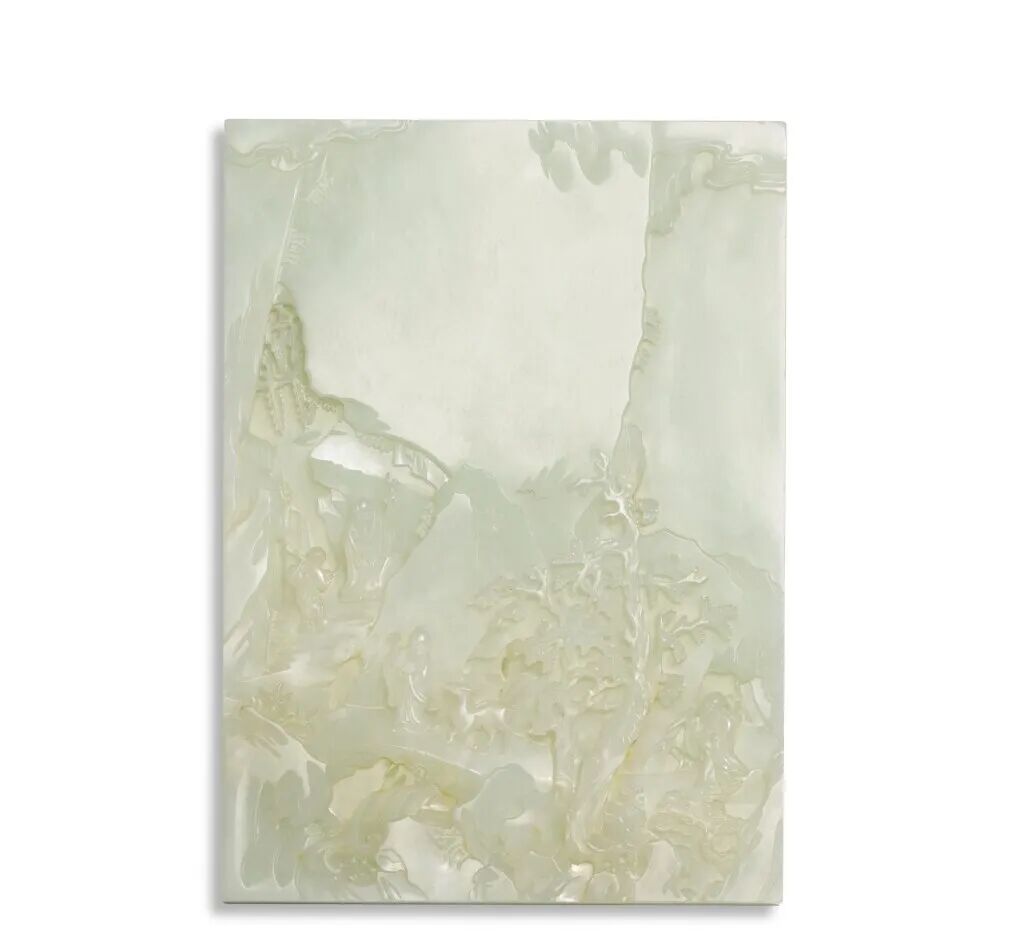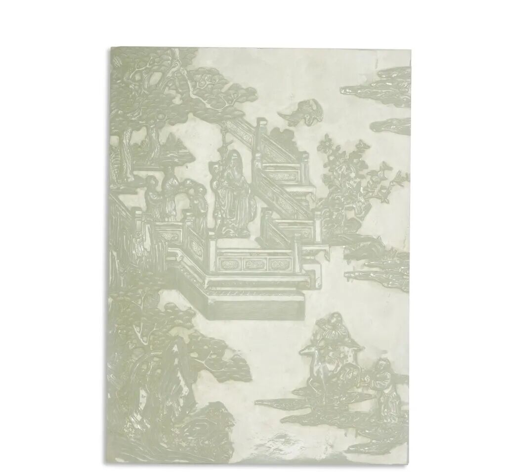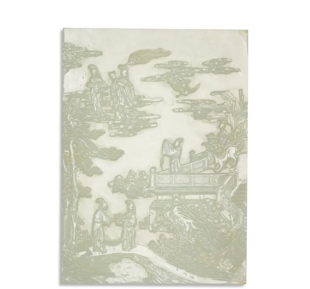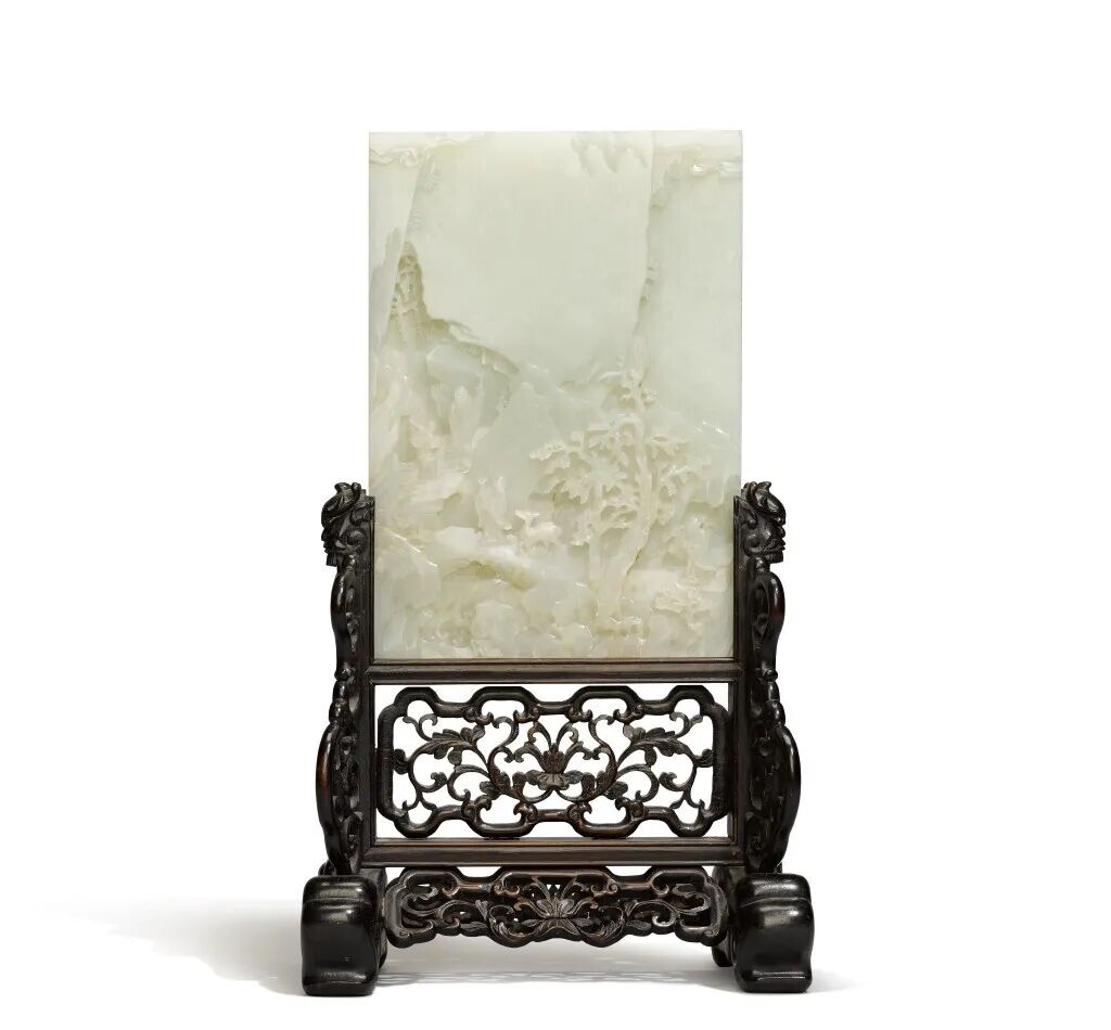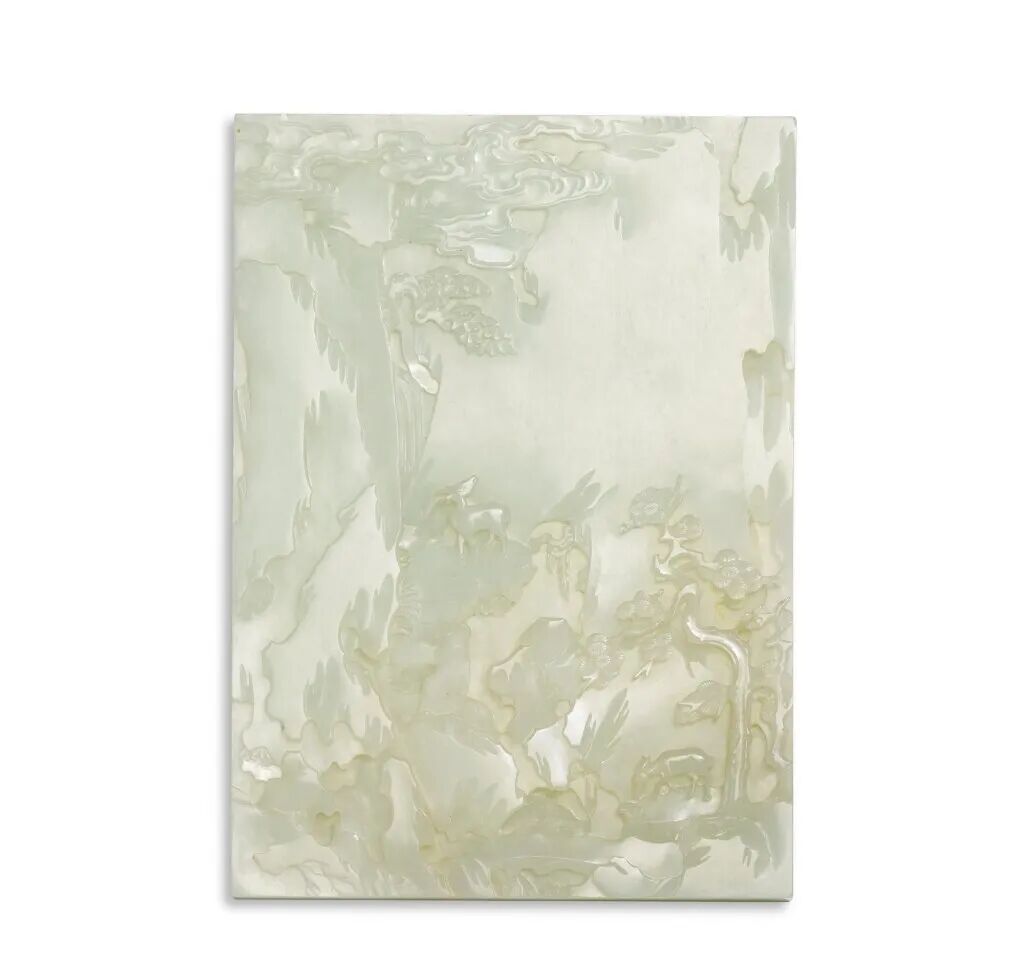 |清乾隆 白玉松山高士瑞鹿图砚屏|