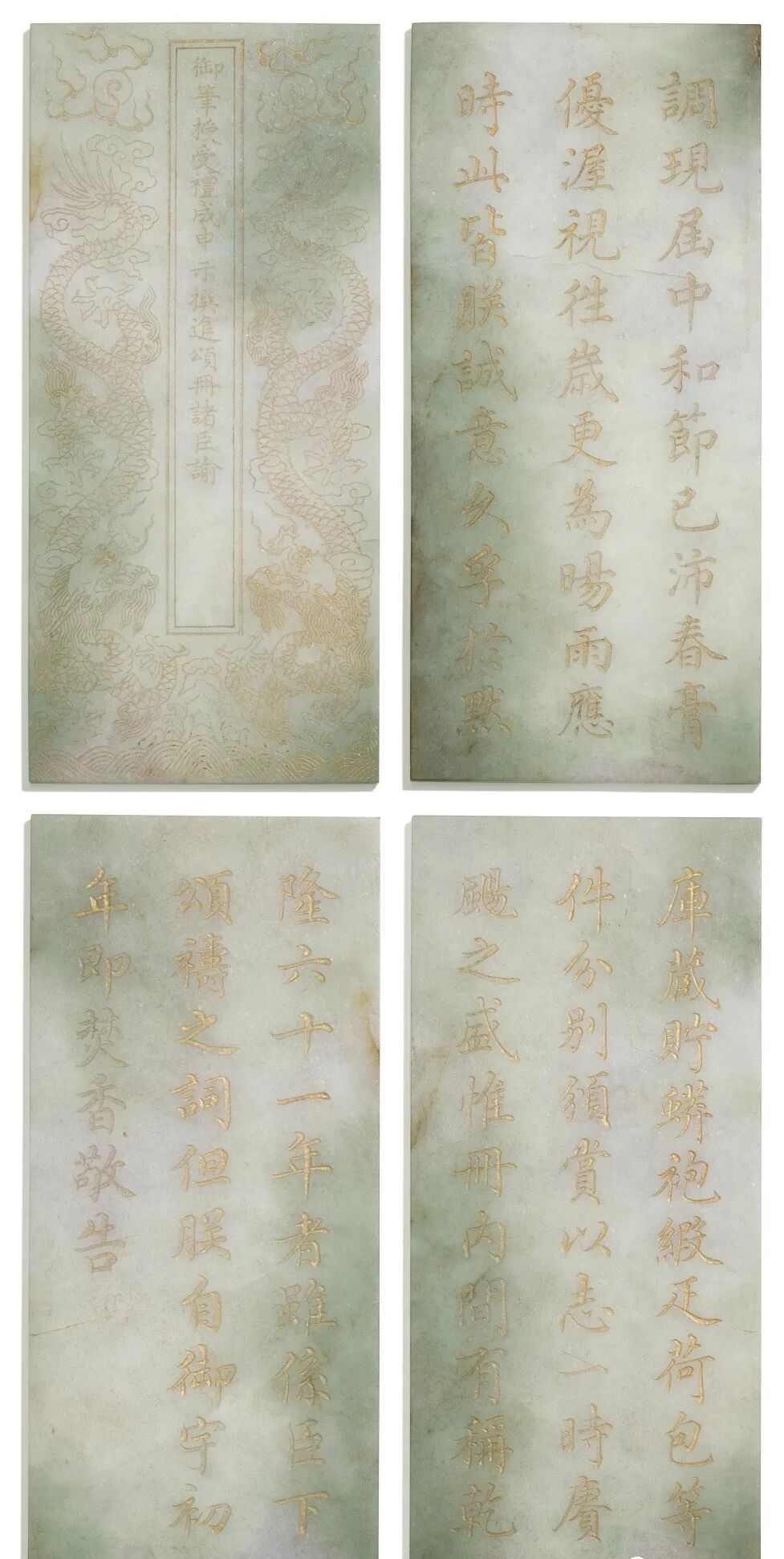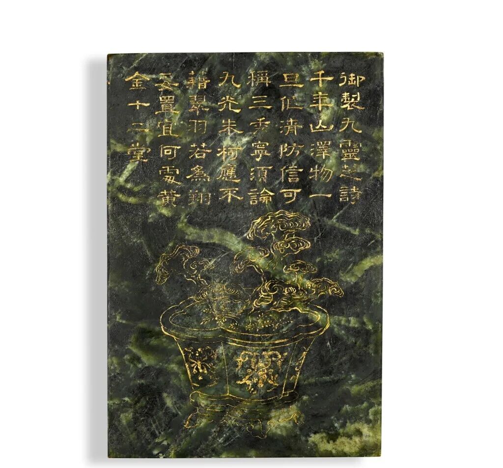 |清乾隆 碧玉御制诗灵芝图插屏|