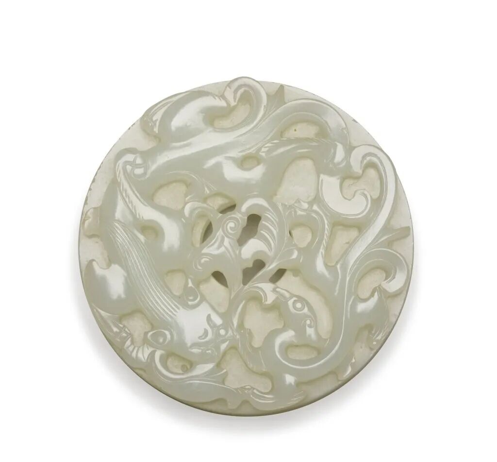 |清乾隆 白玉仿古螭龙凤纹璧|