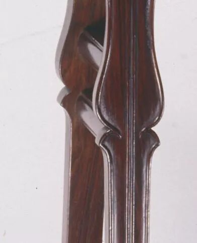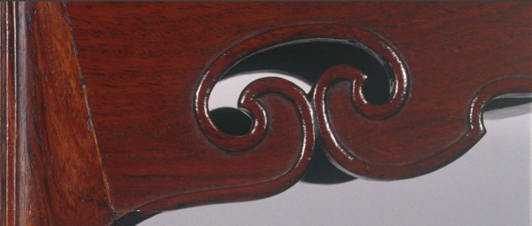 线条弧度与人体脊柱弯度相符,比例匀称,造型流畅,不仅外观简明大方,使用时也极其舒适。座面下的券口,既是装饰,又起加固作用。