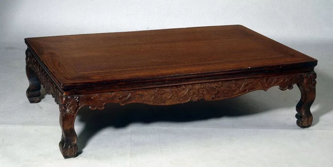 该桌为有束腰三弯腿造型,适合雕刻精美的纹饰,与很多素雅的无束腰直足类型炕桌形成鲜明对比,造型较为特殊少见。