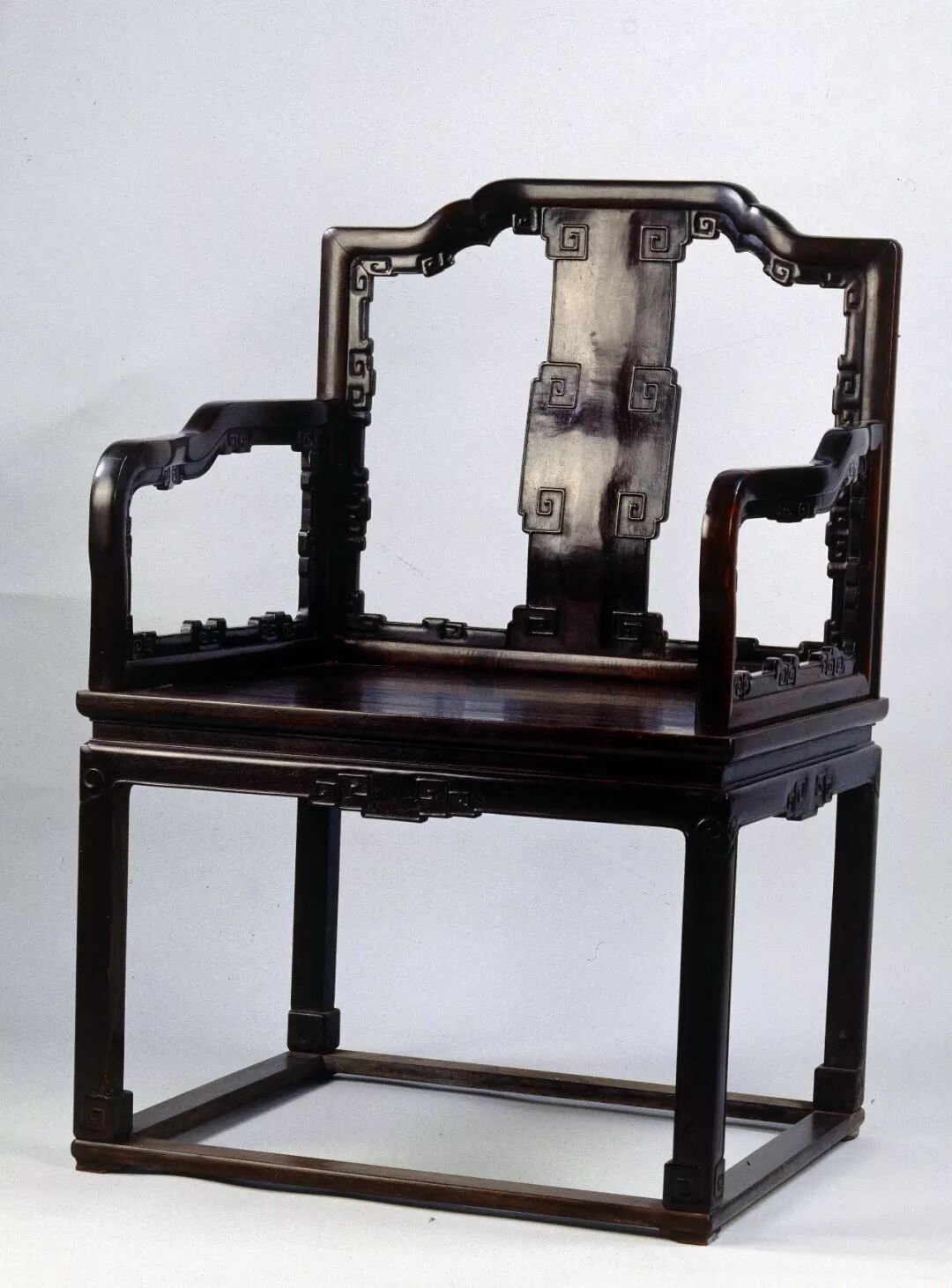 清 紫檀有束腰雕回纹扶手椅