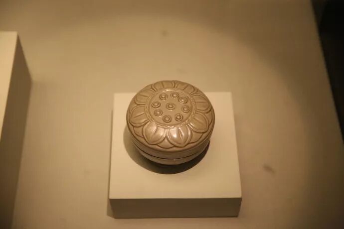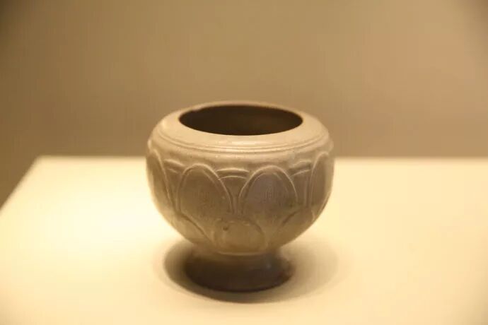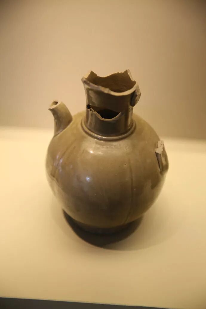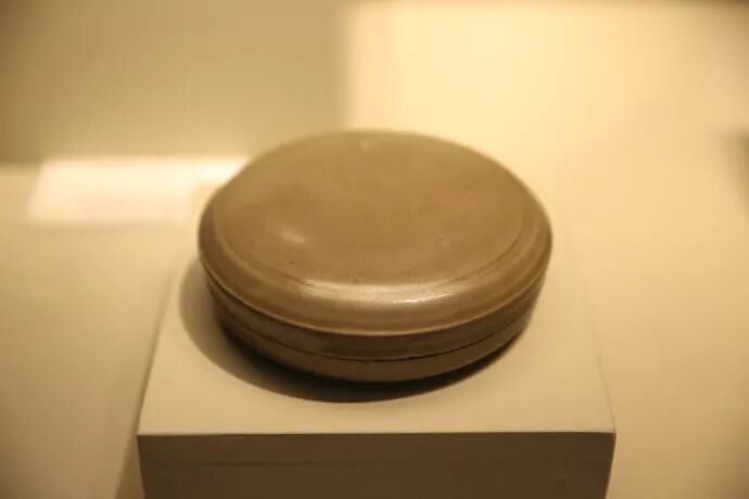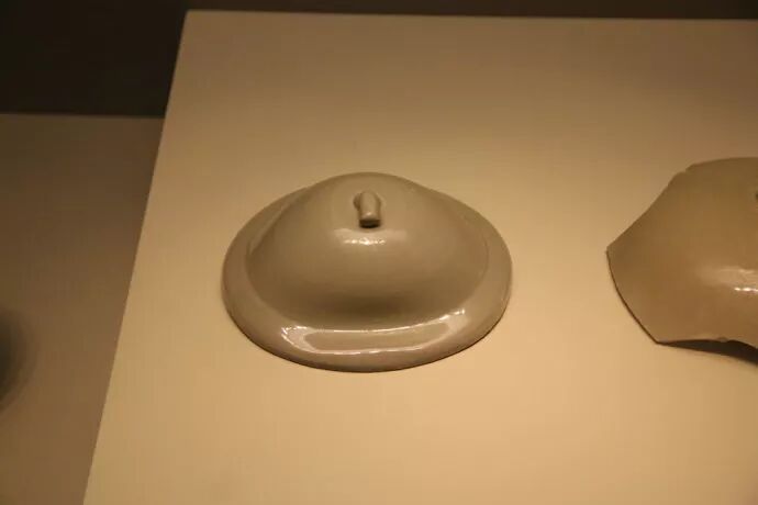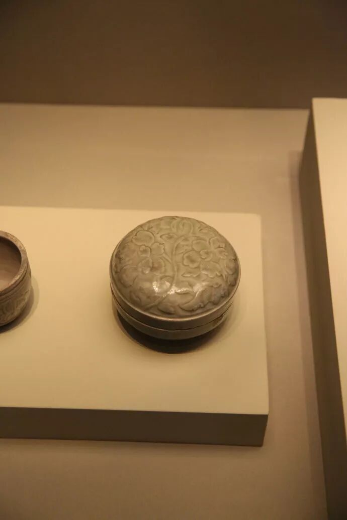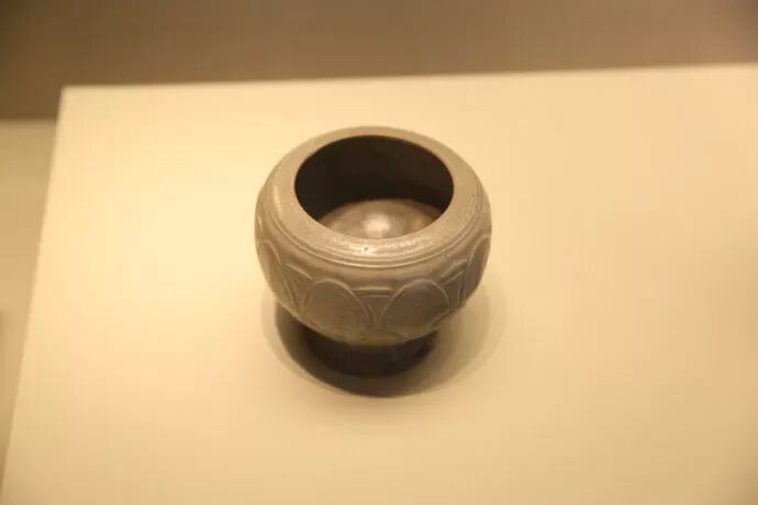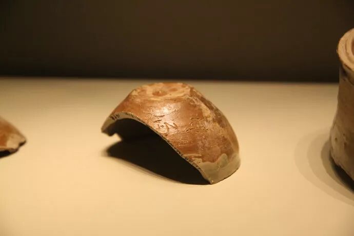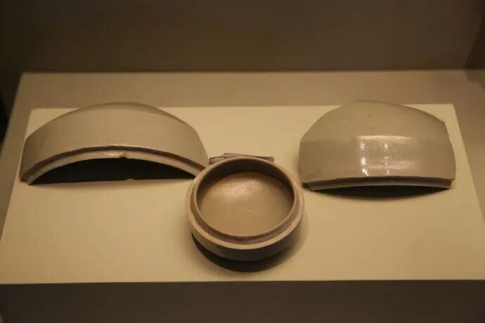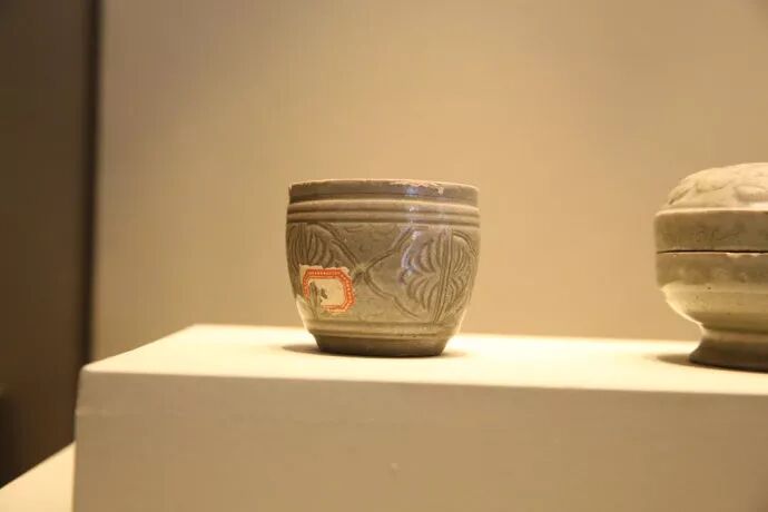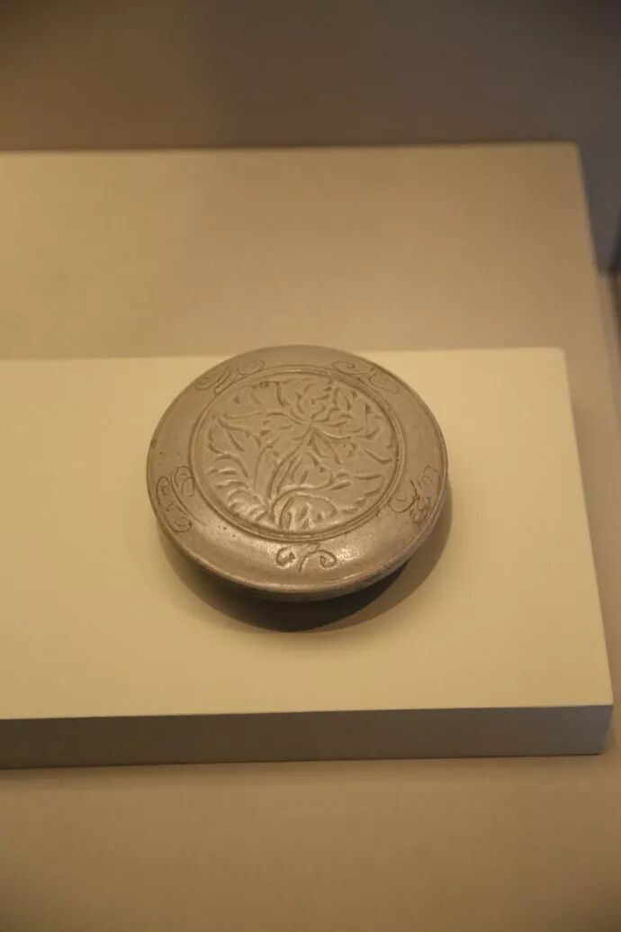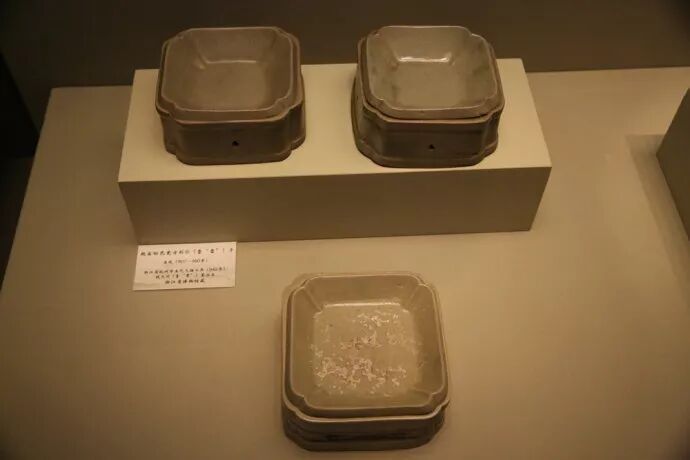 展览中还有一个出土的墓志罐,说明了越窑的产地所在——浙江省慈溪市上林湖地区。罐子上的铭文翻译为:“中和五年岁在乙巳三月五日,终于明州慈溪县上林乡……光启三年(887年)岁在丁未二月五日,殡于当保贡窑之北山。”