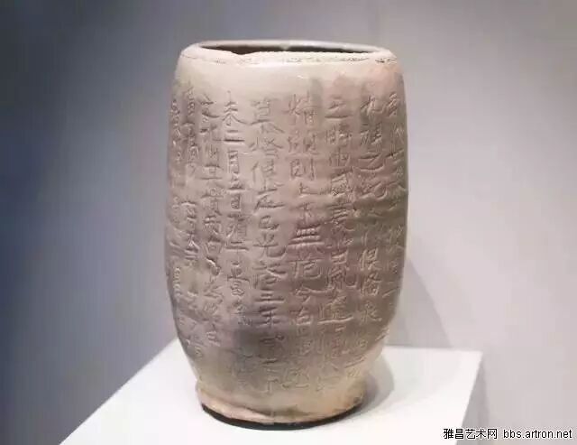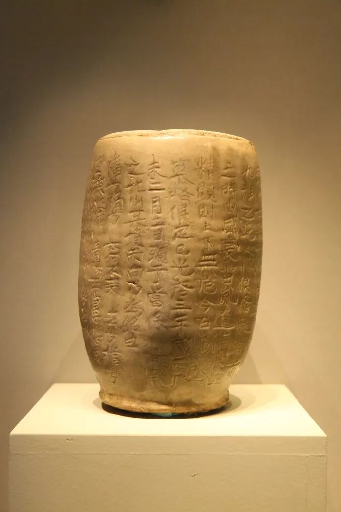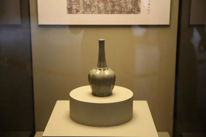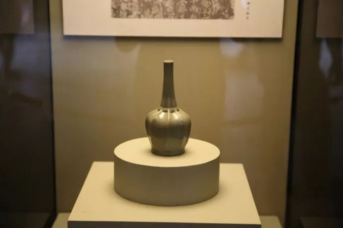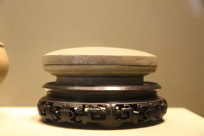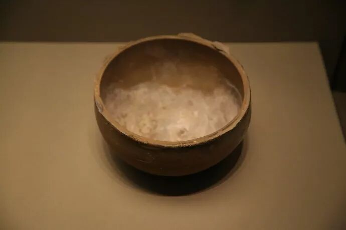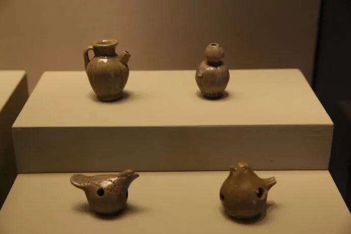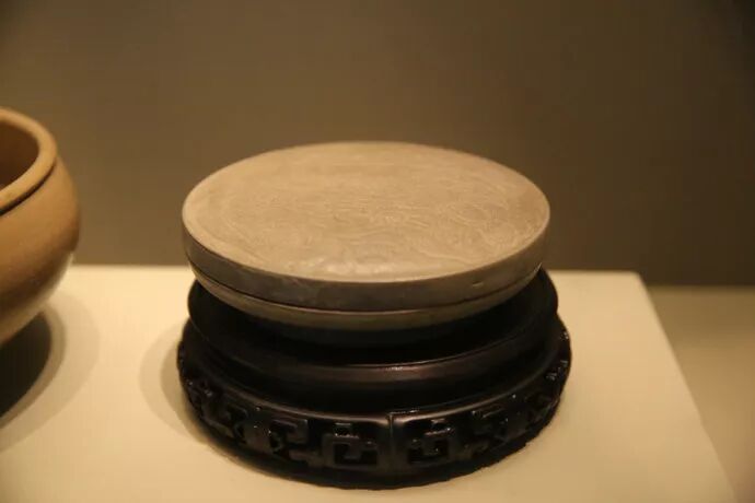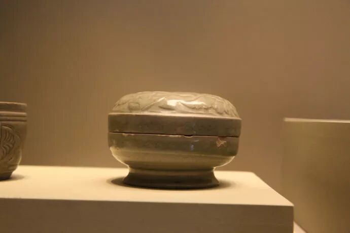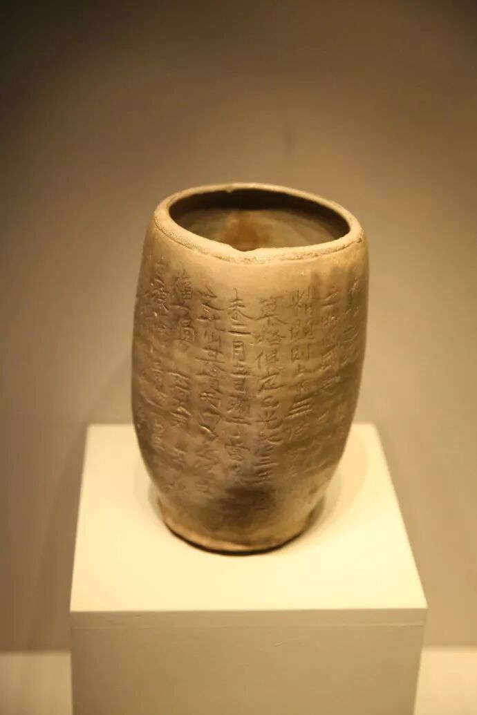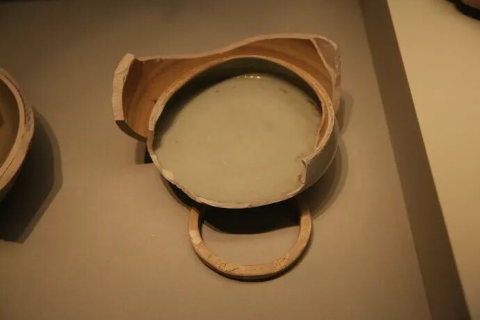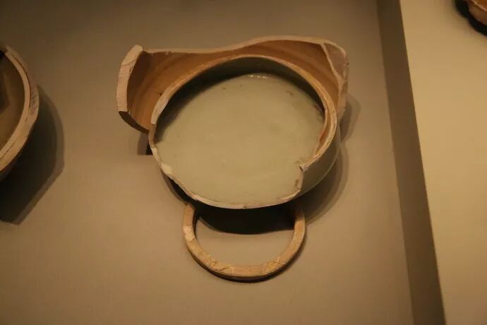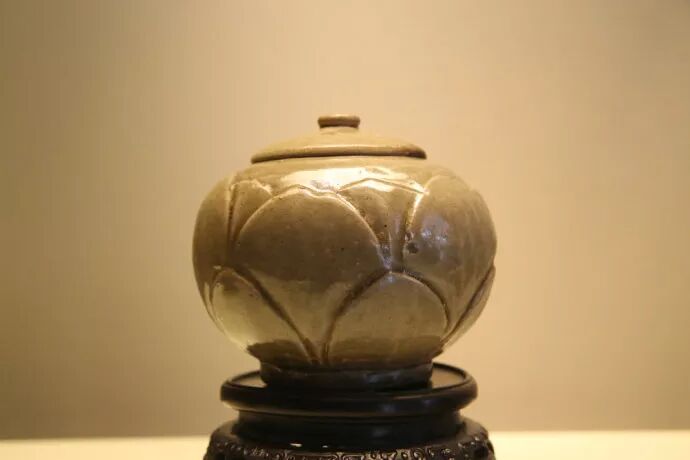 展览中还有一个出土的墓志罐,说明了越窑的产地所在——浙江省慈溪市上林湖地区。罐子上的铭文翻译为:“中和五年岁在乙巳三月五日,终于明州慈溪县上林乡……光启三年(887年)岁在丁未二月五日,殡于当保贡窑之北山。”