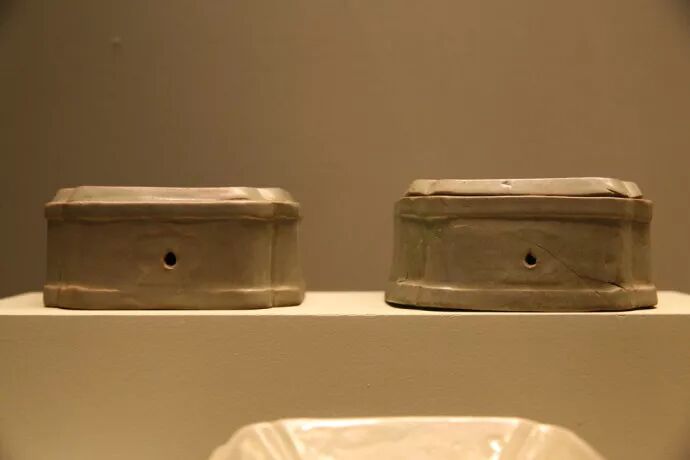 能称得上秘色瓷的越窑产品都是由匣钵单件装烧而成的,匣钵会根据器物的形状而制作,有的还可以将匣钵叠加起来,一次性烧制很多同类产品。例如M形匣钵,就是烧制碟子的专用工具。