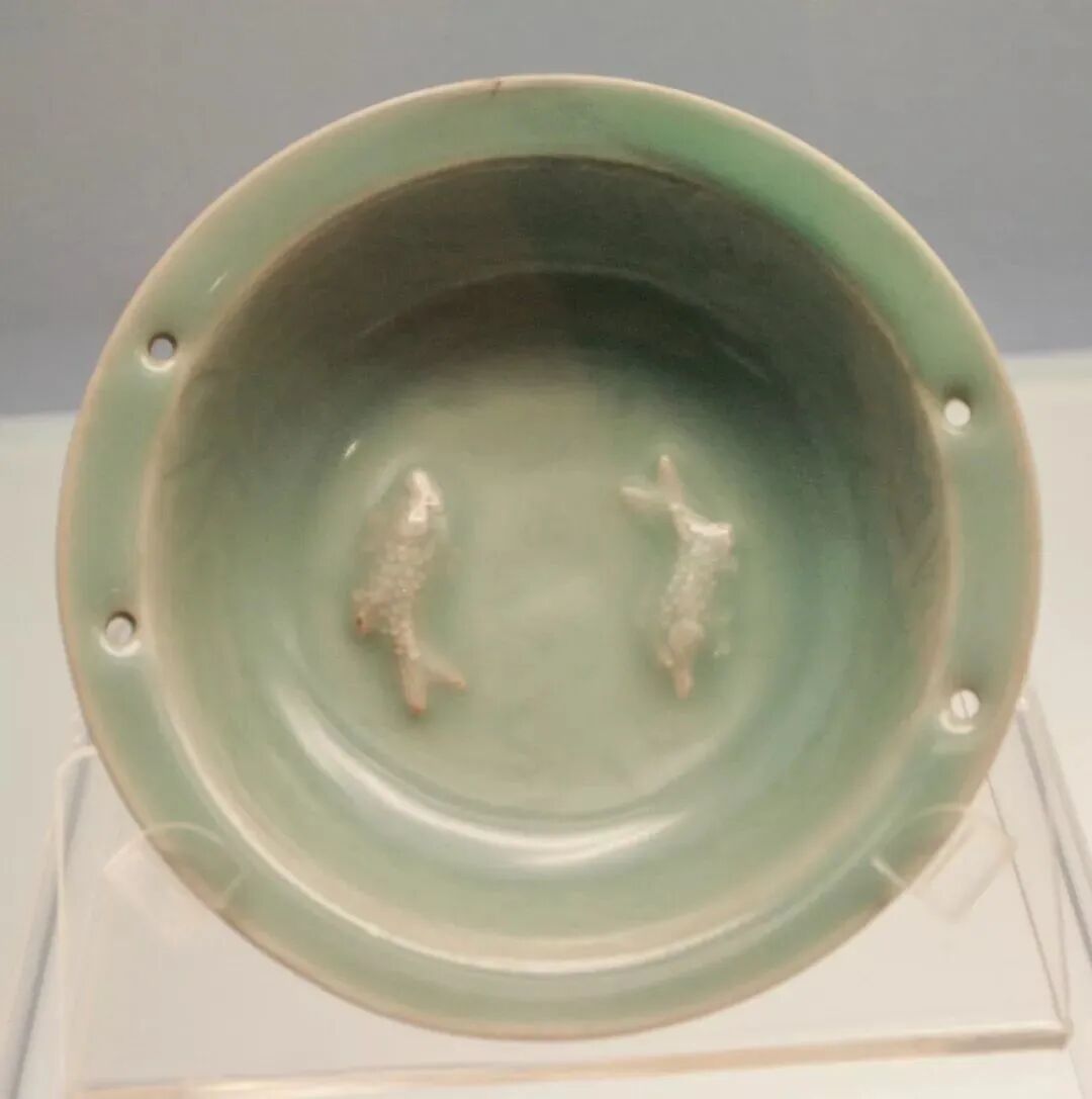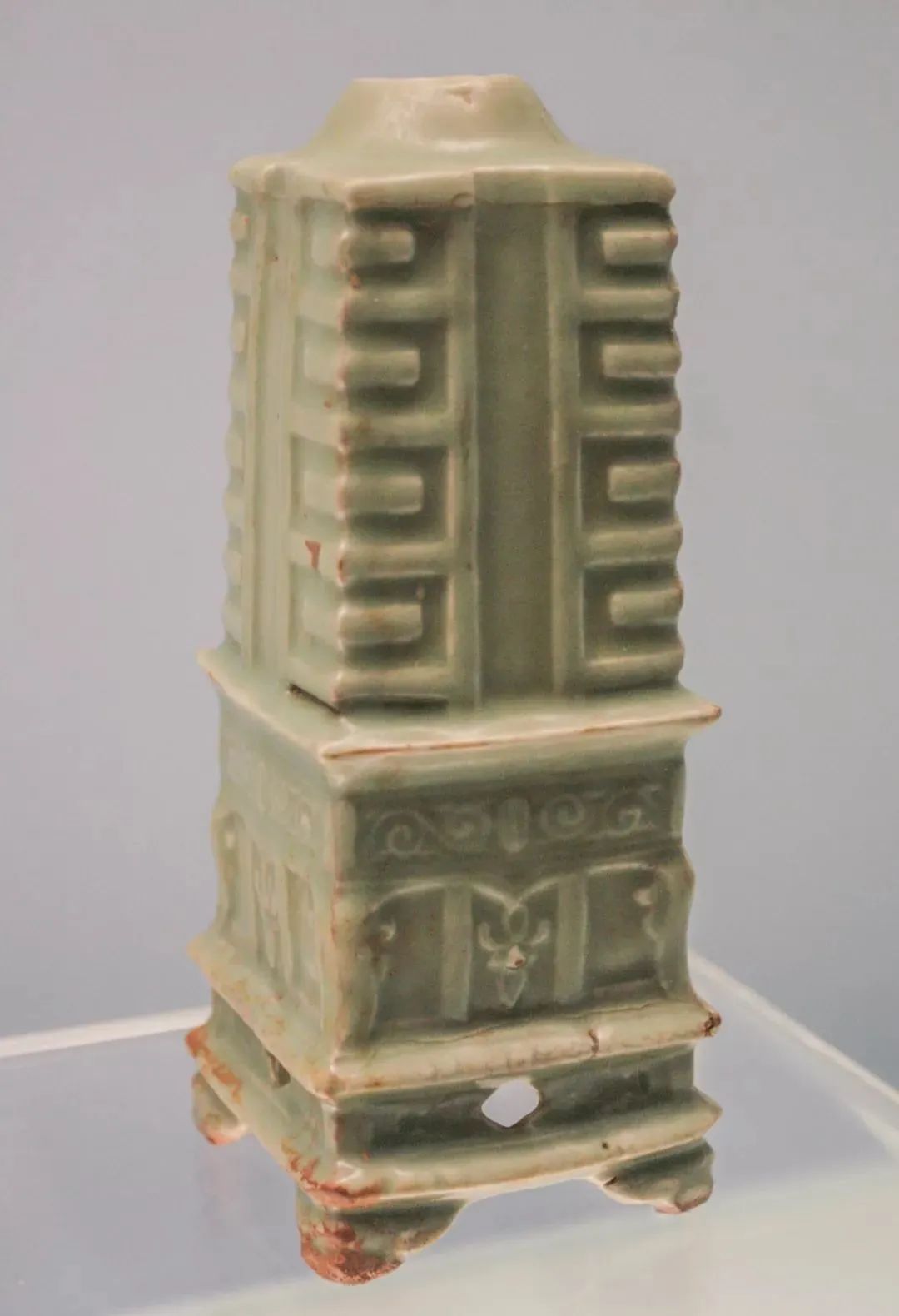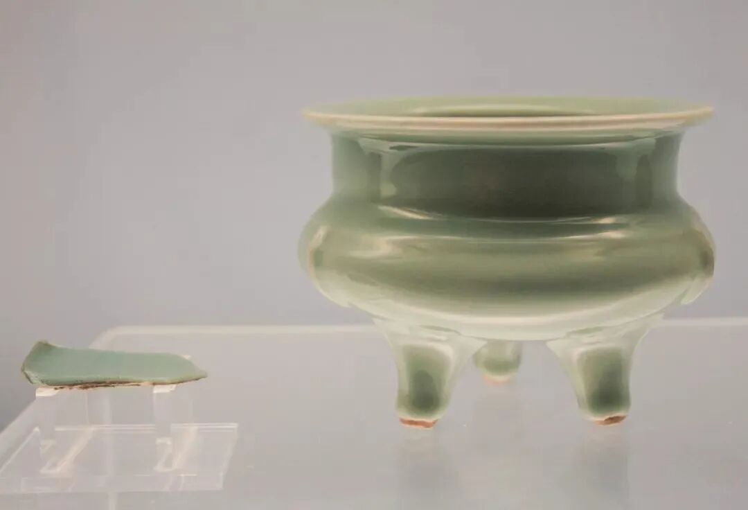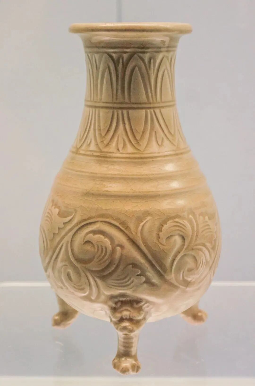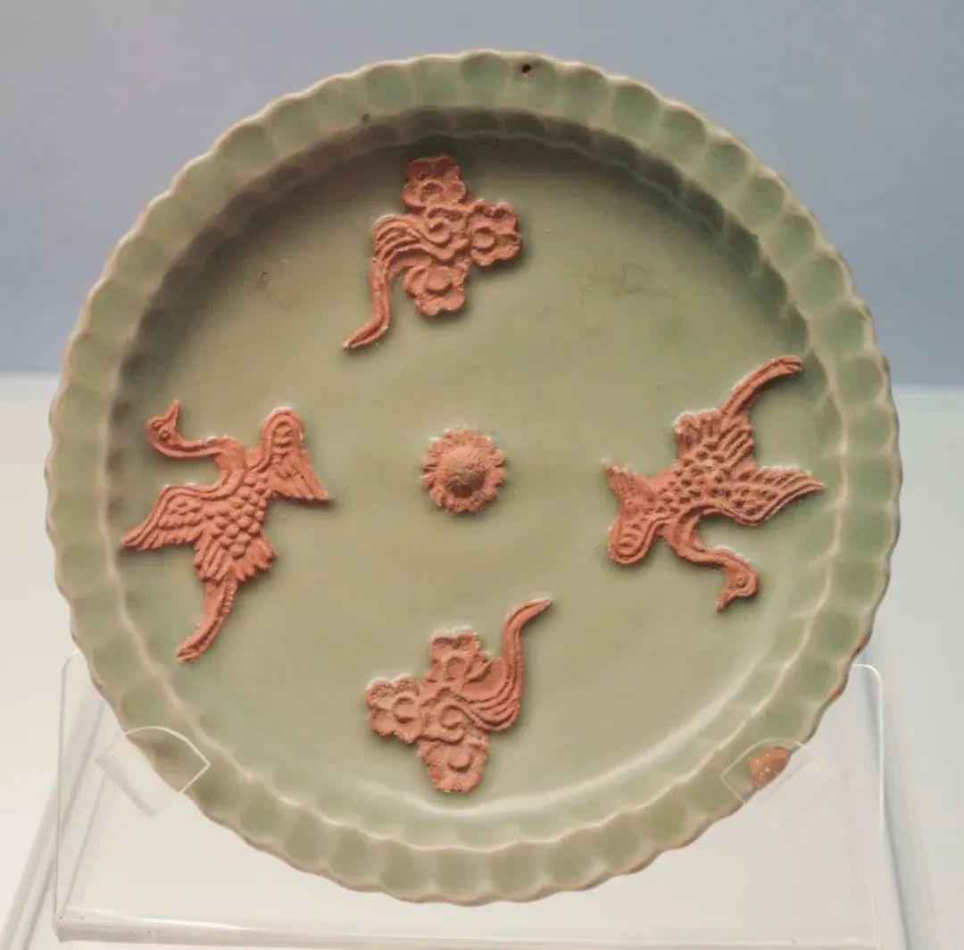 龙泉窑在今浙江省龙泉县,始烧于唐。北宋时期产品依然深受越窑影响,釉多呈青黄色,以刻、划花为装饰。南宋时期创烧的粉青梅子青品种代表了古代青瓷烧制的最高水平,许多产品采用多次施釉方法,釉色葱翠,鲜丽夺目。元代龙泉窑产品制作趋于粗放厚实,但贴花、铜红和铁红加彩的出现,为这一时期装饰工艺增添了新的色彩。