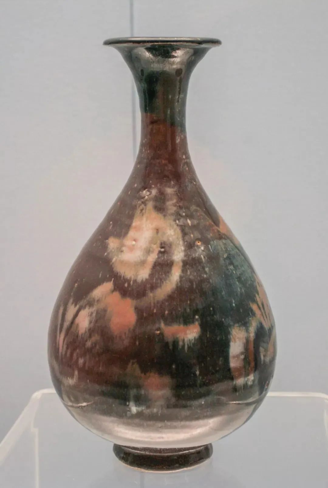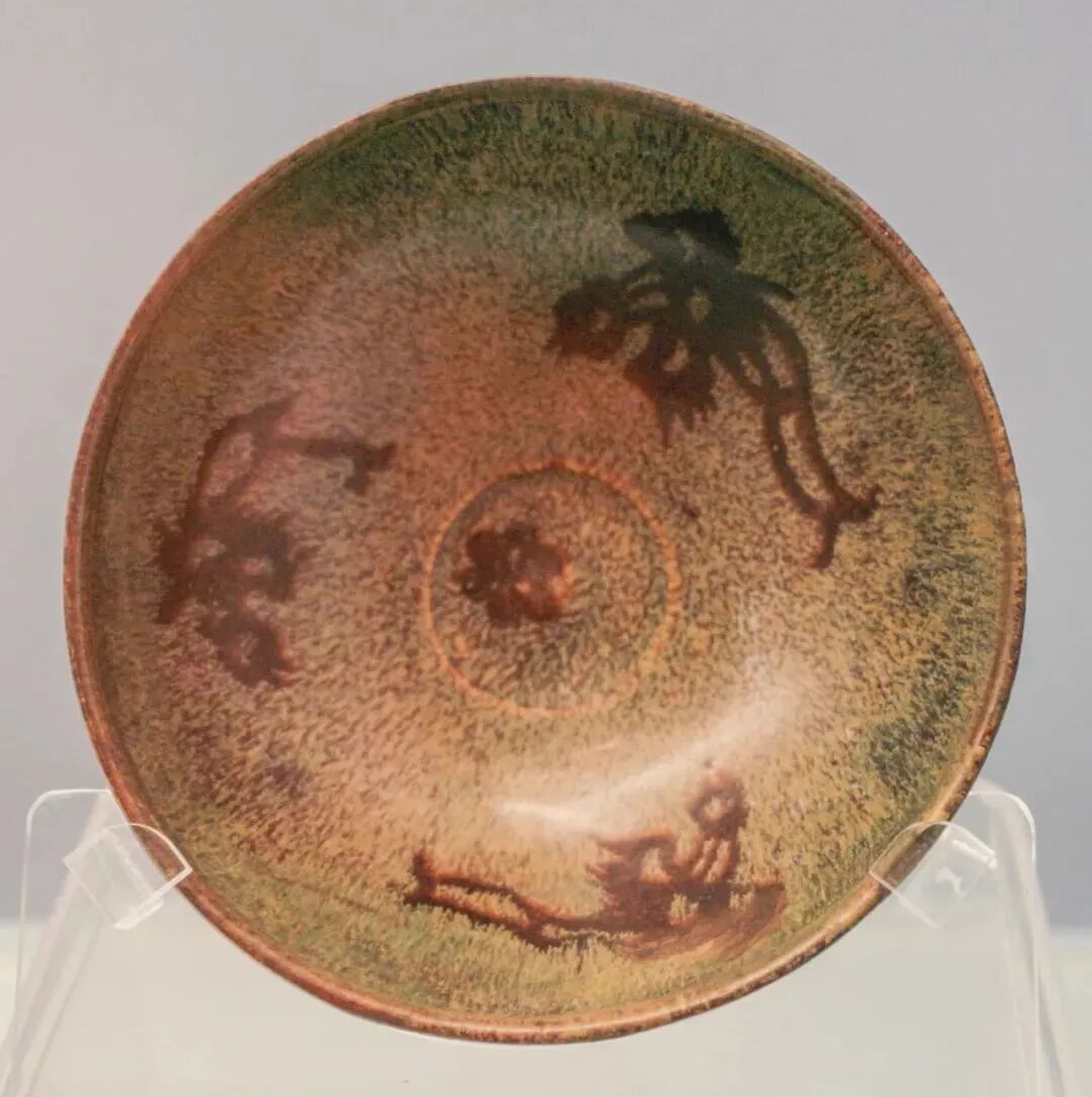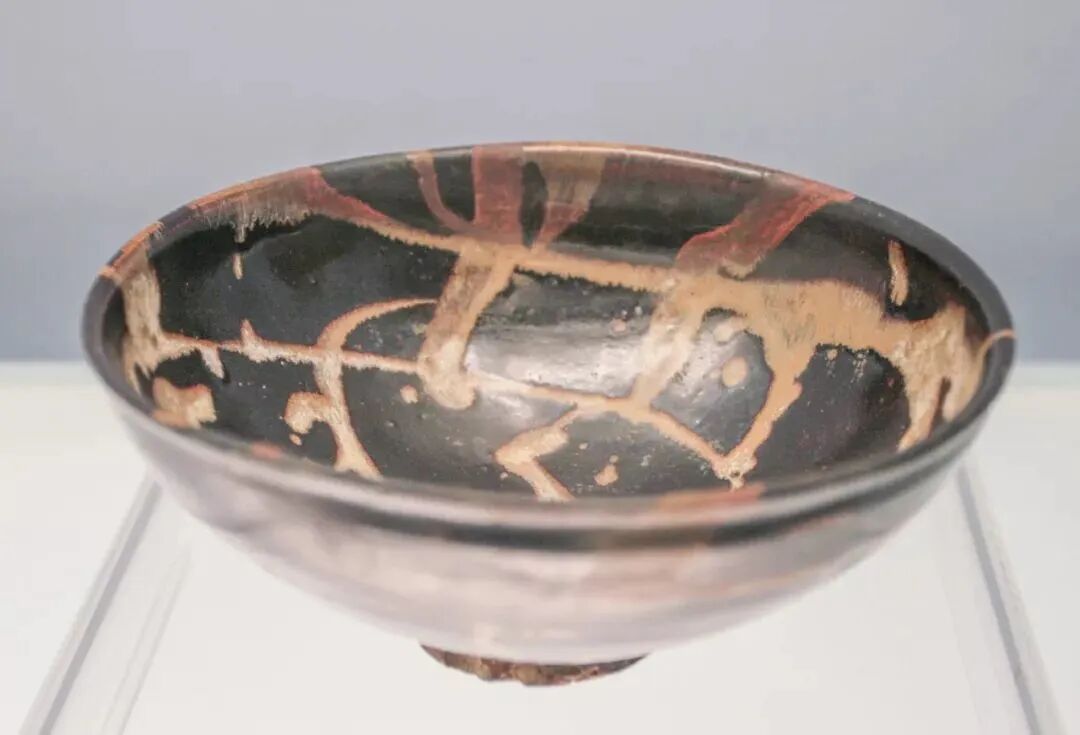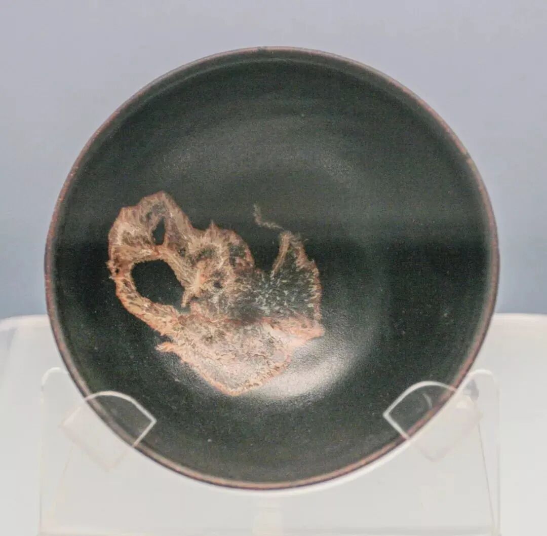 宋、金、元时期,南北方黑釉瓷烧造进入了新的发展时期。福建建窑烧造的兔毫盏,器表黑釉中有放射状毫光,宜于“斗茶”。河南、河北、山西等地窑场的“油滴”瓷同样得到了人们的青睐。兔毫盏和油滴形成机理是:富含铁分的釉内有足量结晶性物质,熔融后处于饱和状态,在缓冷过程中产生了析晶,从而形成了兔毫盏细纹或滴珠纹。