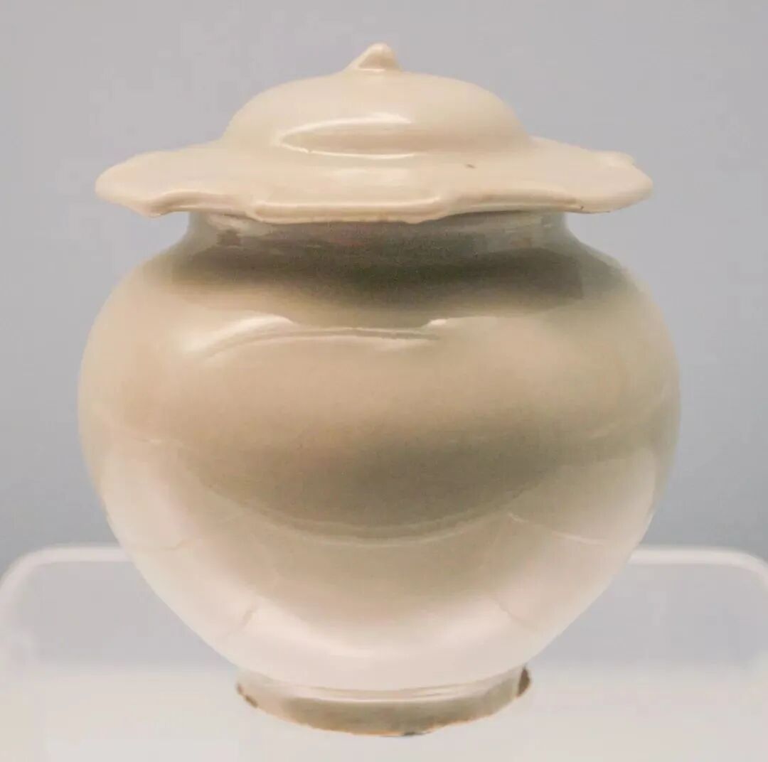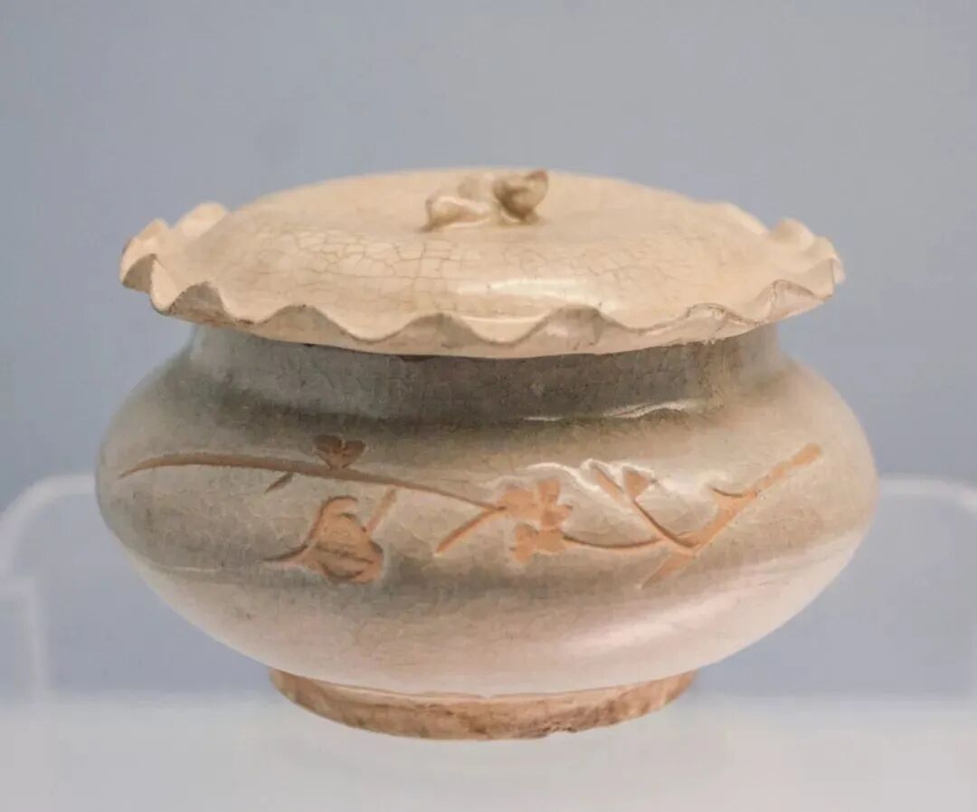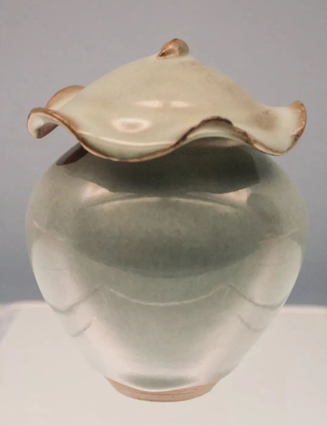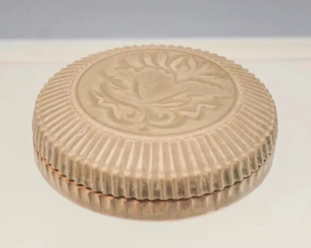 龙泉窑青釉刻花莲瓣纹五管盖罐
