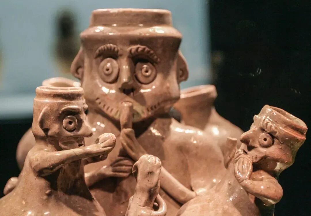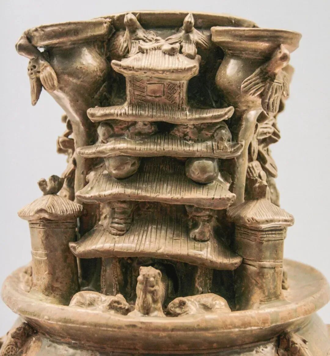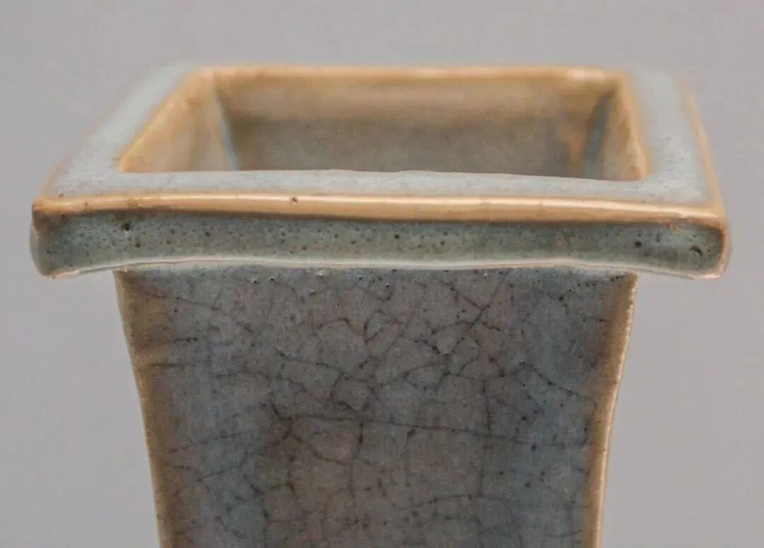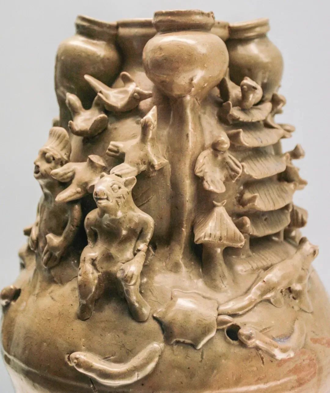 龙泉窑青釉刻花莲瓣纹五管盖罐局部