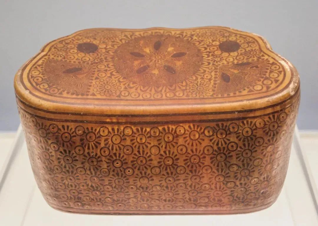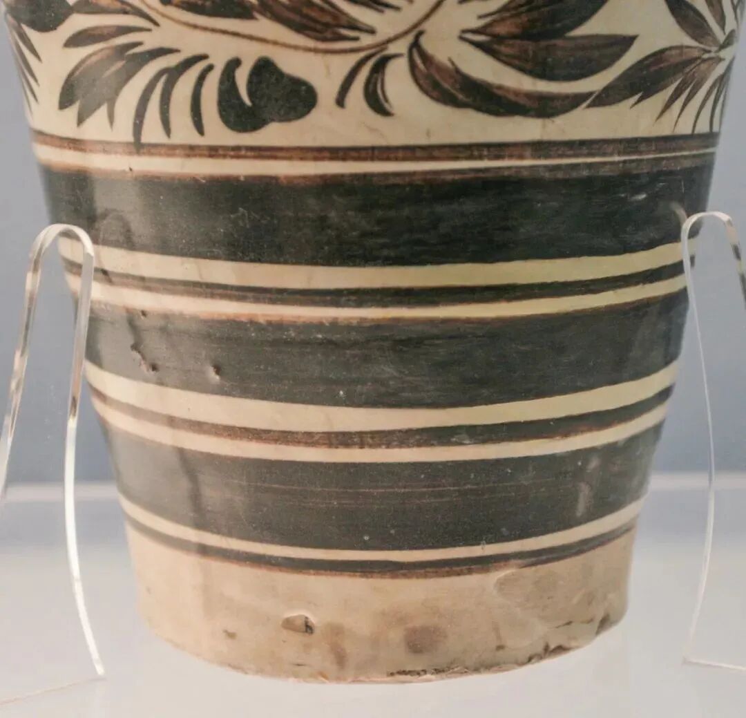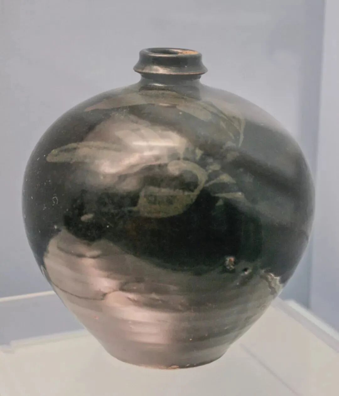 地处江西吉安永和镇的吉州窑,为宋代南方重要瓷窑。所烧产品有青白瓷、黑釉瓷、彩绘瓷等,尤以后二者最为著名。黑釉瓷采用贴花、刻花、彩绘、洒釉等方法,创作出许多别致而又自然的纹饰,特别是木叶纹和剪纸贴花工艺,具有独特的艺术风格。彩绘瓷基本仿效磁州窑,但器身不施化妆土,外观效果与之不尽相同。