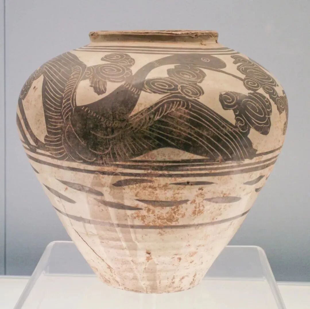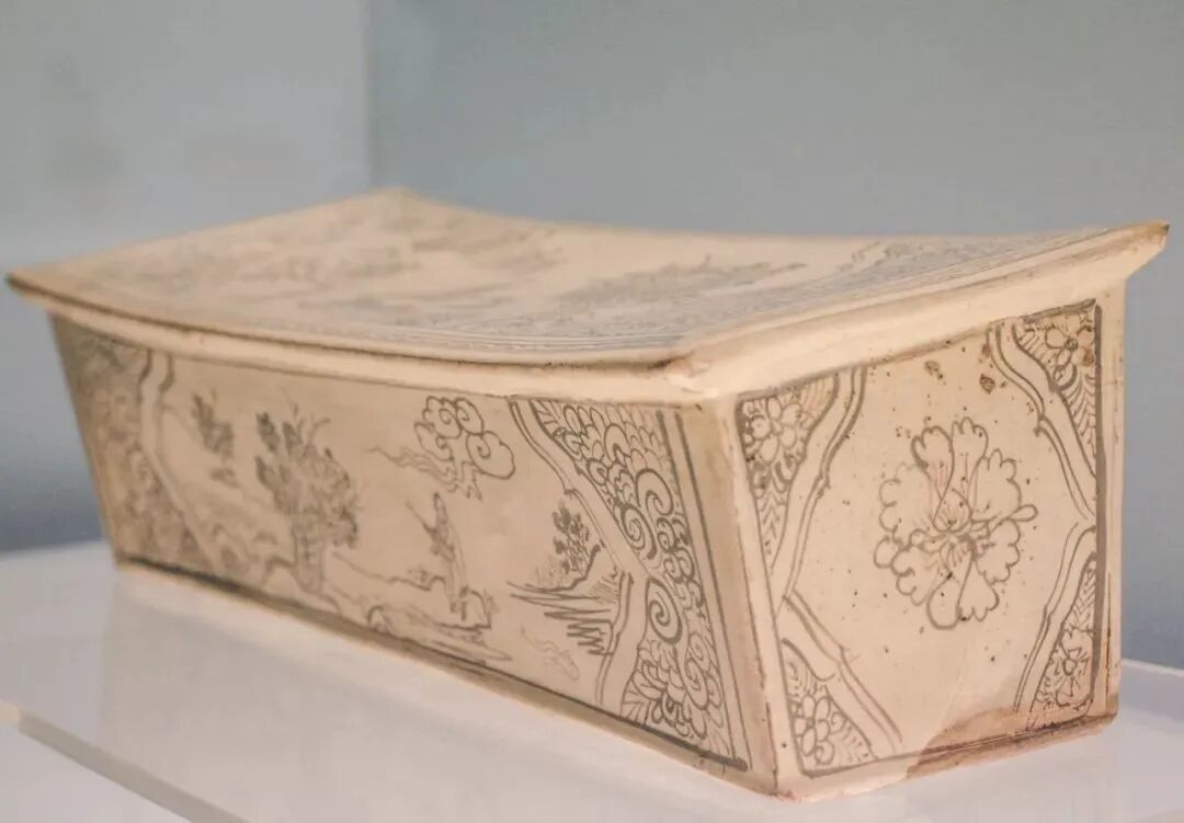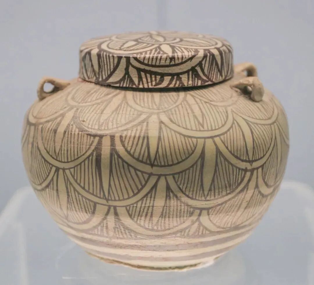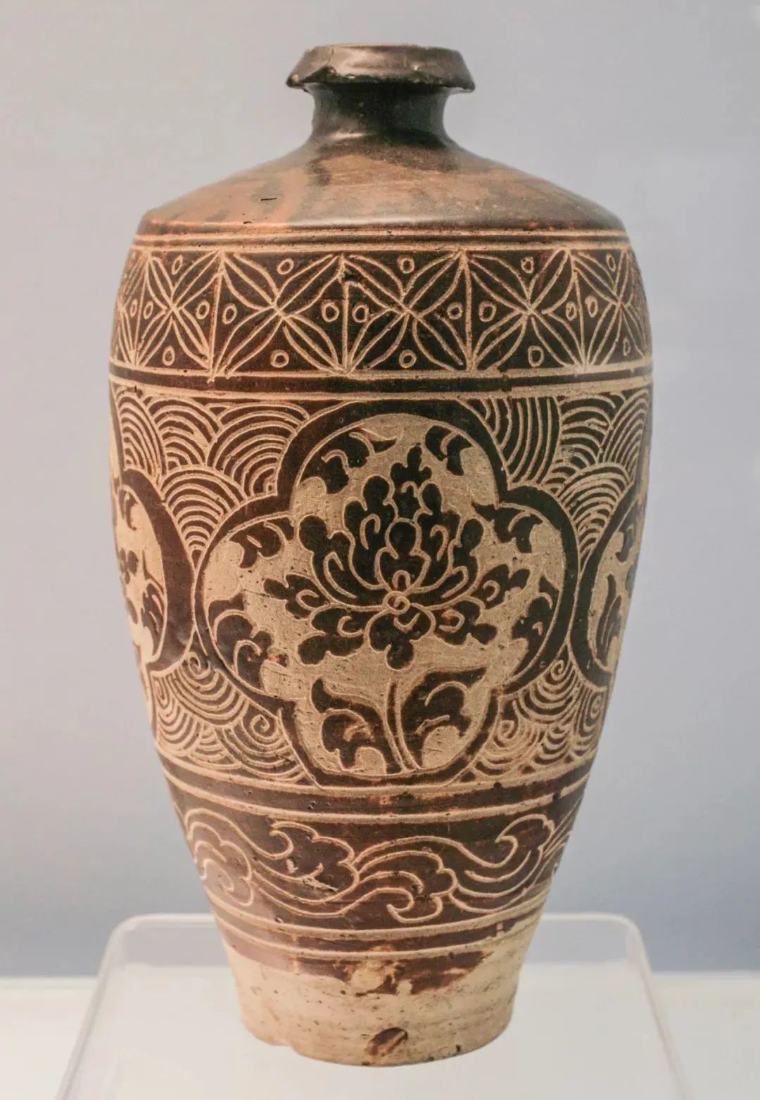 磁州窑在今河北邯郸地区,为北宋、金代著名民窑。装饰工艺多样化,有刻、划、剔、彩绘等技法,尤以白地釉下绘黑、褐彩和剔、划化妆土地的纹样制品的制作最具代表性。装饰图案的题材多反映人们喜闻乐见的内容,具有清新活泼的生活气息和浓厚的民间色彩。