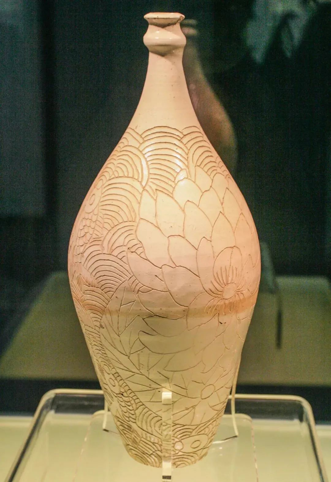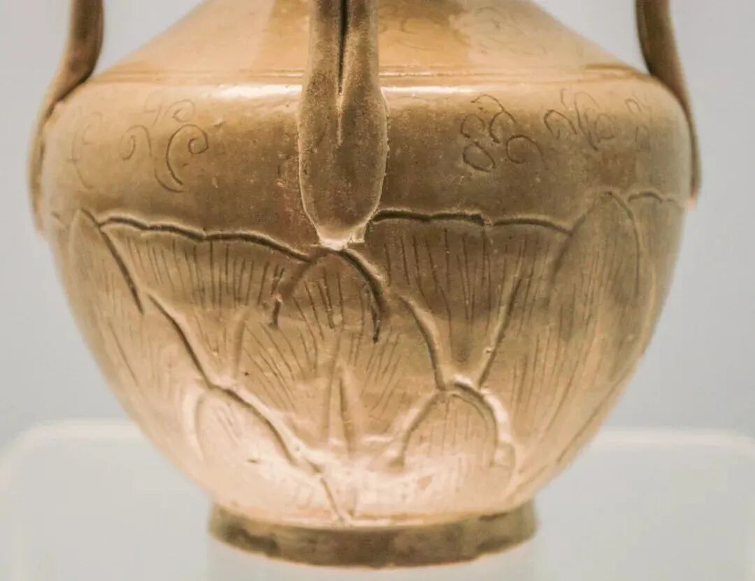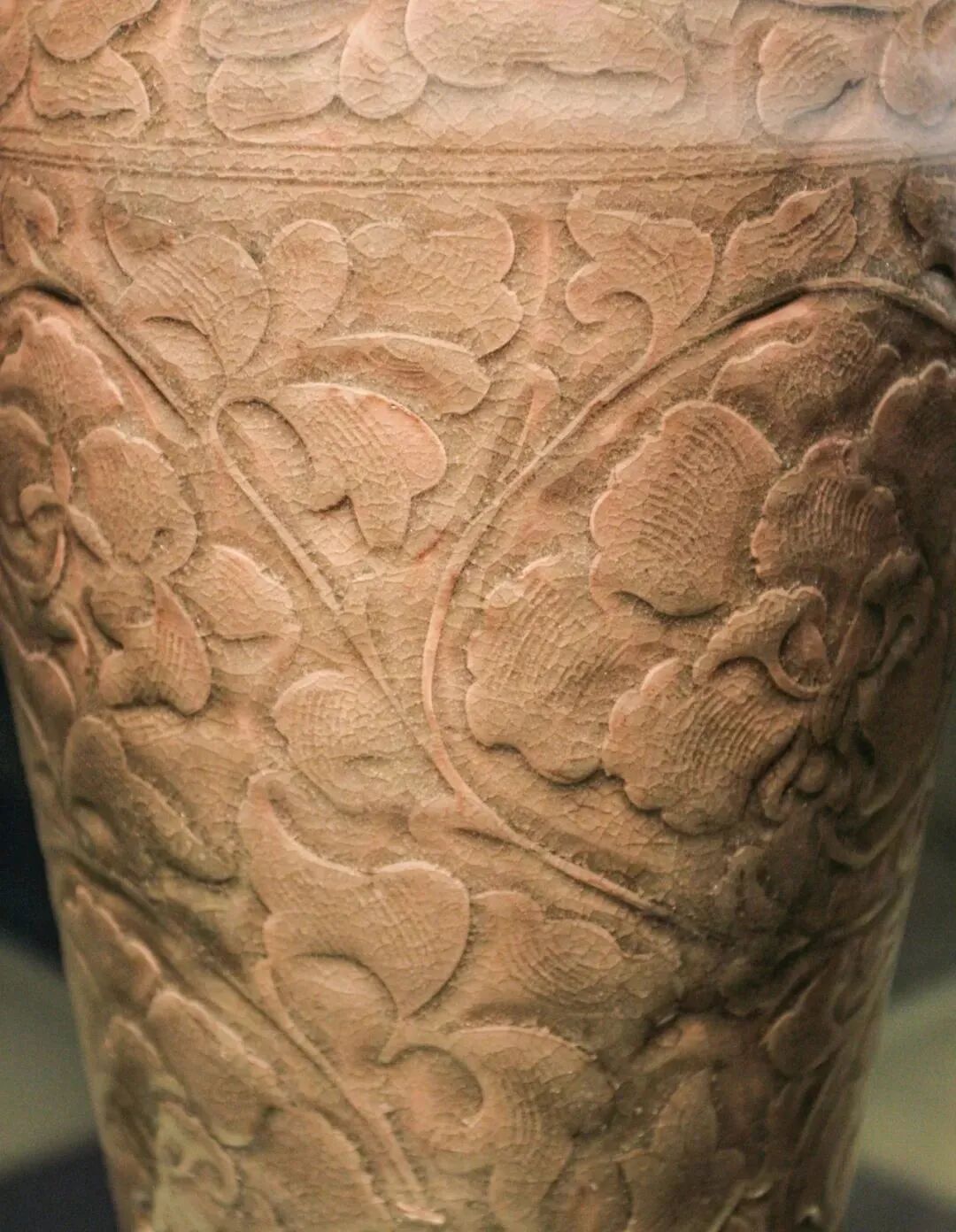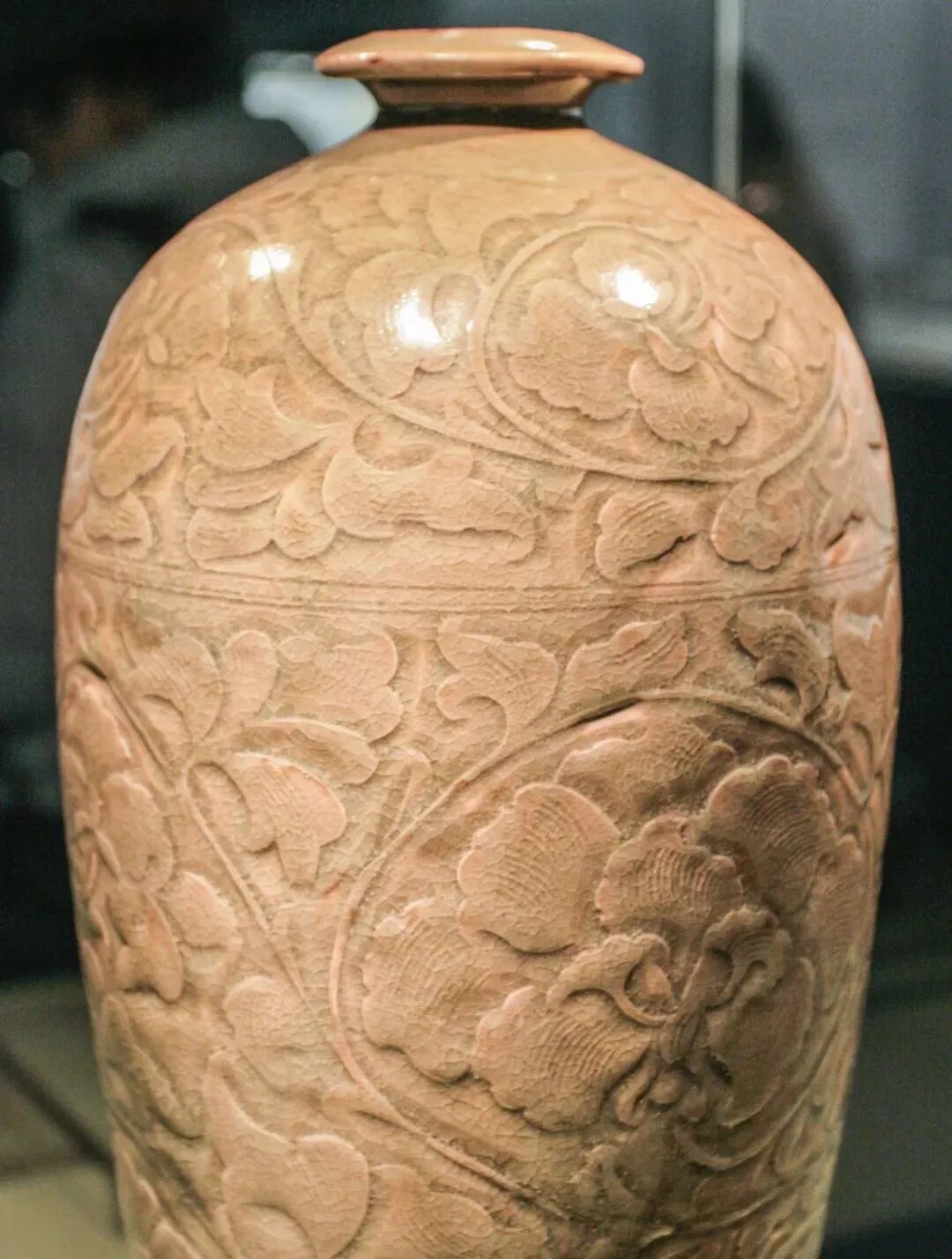 耀州窑青釉刻花牡丹纹梅瓶局部