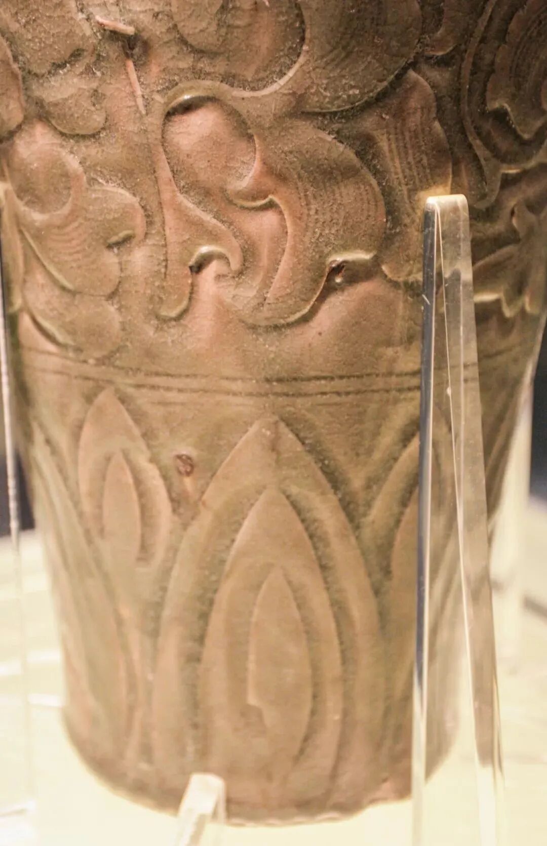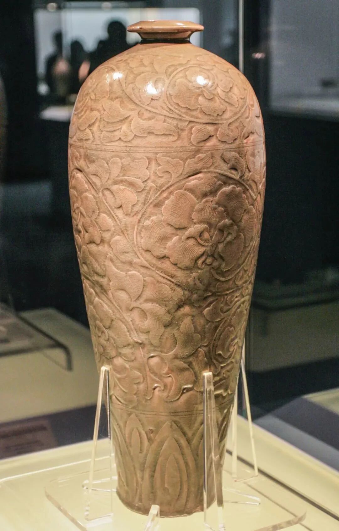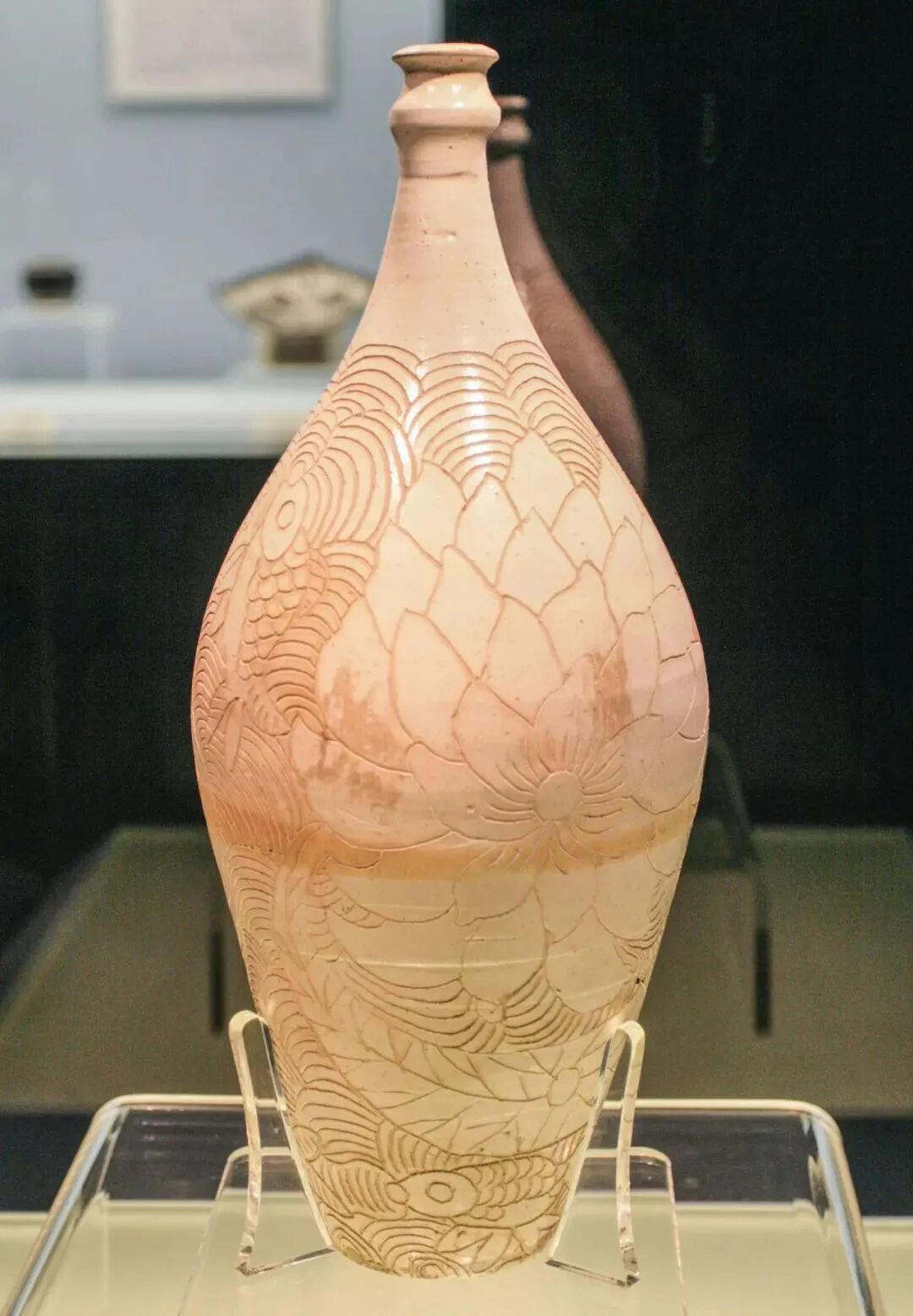 耀州窑青釉刻花牡丹纹梅瓶局部