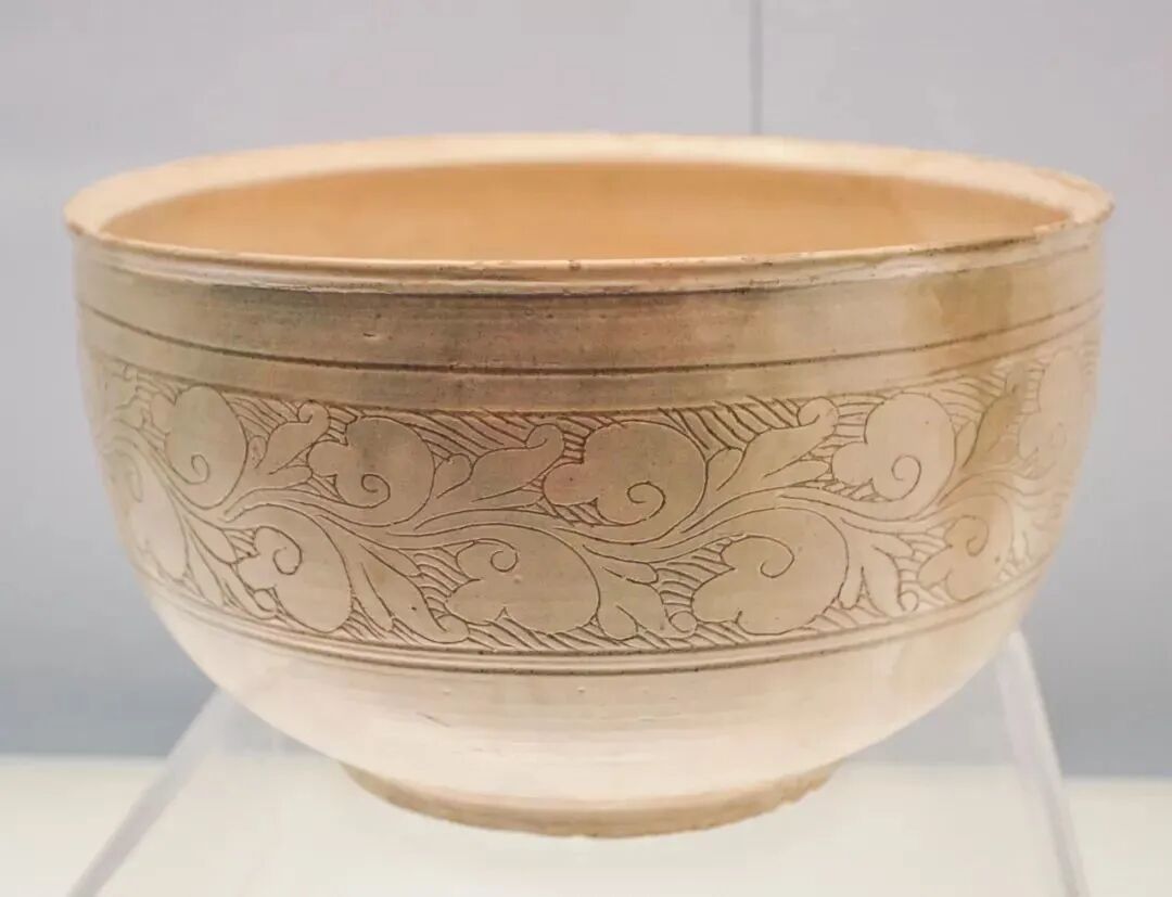 以河北曲阳涧磁村、燕山村为中心窑区的定窑,在唐代即开始烧造白瓷,五代北宋及金代为其成熟发展时期,至元代趋向衰落。五代产品精细轻薄,部分已开始进入宫廷。北宋至金流行的刻花、印花装饰,代表了这一时期瓷器刻花,印花工艺的新水平。由于采用覆烧工艺,进贡皇家的上等产品多包镶金、银、铜口。