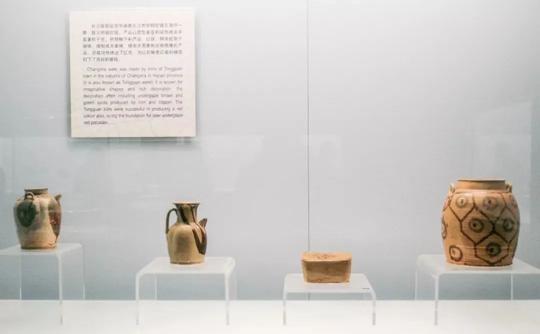 长沙窑窑址在今湖南长沙市郊铜官镇瓦渣坪一带,故又称铜官窑。产品以造型多变和装饰技法丰富著称于世。所制釉下彩产品,以铁铜装饰于器体,烧制成大量褐、绿斑点图案和状物图像的产品。还成功的烧出了红色,为以后釉里红瓷的烧造打下了良好的基础。