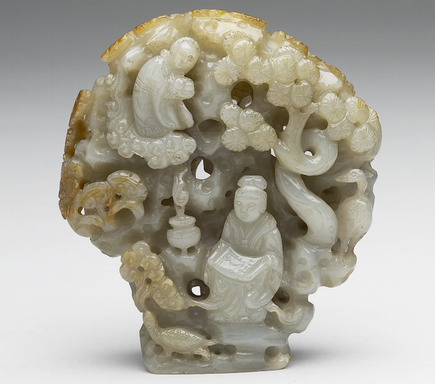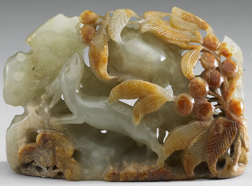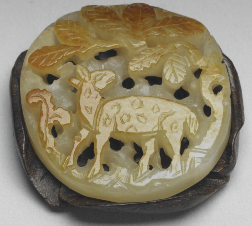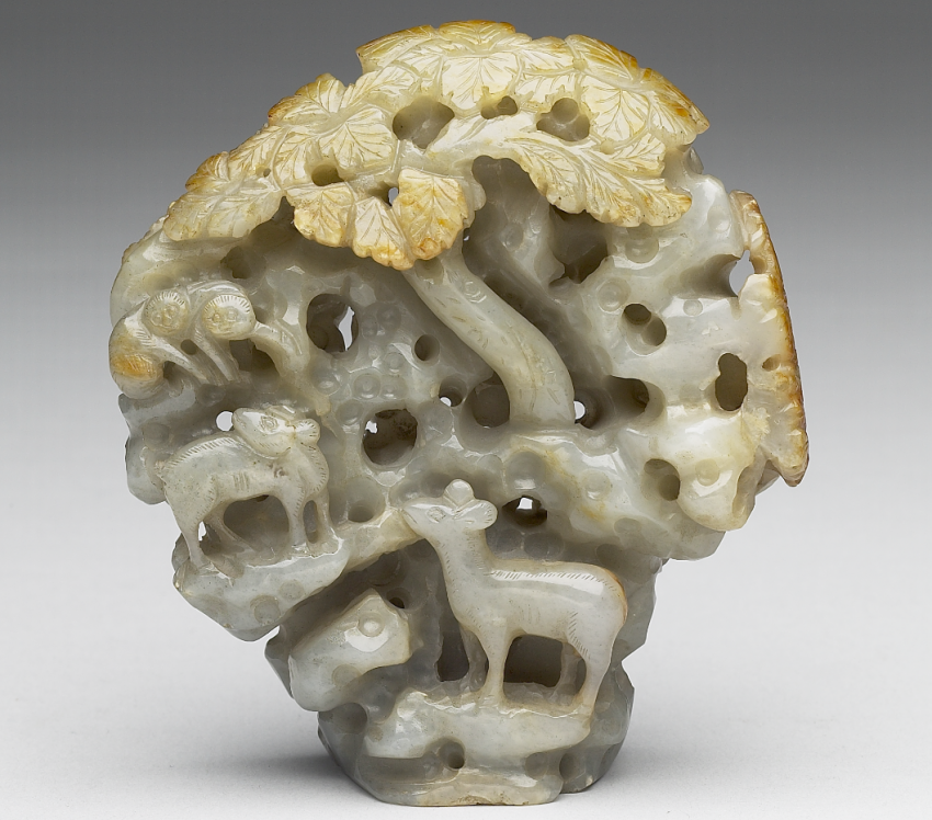 辽代有春、秋“捺钵”(nàbō)制度,即统治者在春秋两季外出行营并渔猎的习俗,金代继承并更名为“春水”“秋山”。“春水”“秋山”玉成为金元时期极具特色的玉器品类。据《金史舆服志》载,秋山题材常见熊、鹿、虎等山林物象。