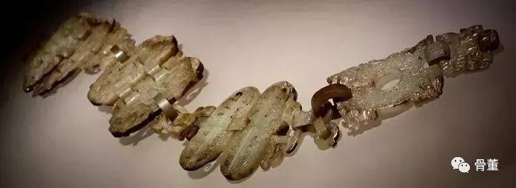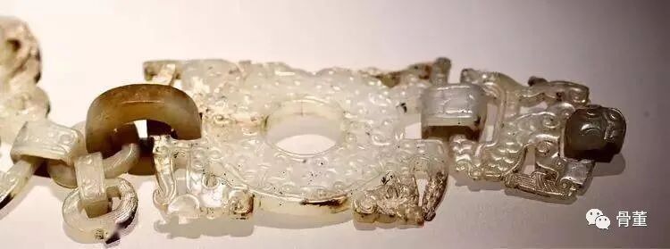战国至汉代时期曾出现许多精美绝伦的组合玉器,其中活环套链组合玉器是古代镂雕工艺与切割工艺的又一次升华。所谓活环套链就是把平面“搜镂”的技巧用于立体“镂空”上,即在一块玉料上镂雕成数个可活动的环或佩,环环相扣、环佩相扣形成连接,使之可卷折可展开,但不可拆卸的一种工艺。