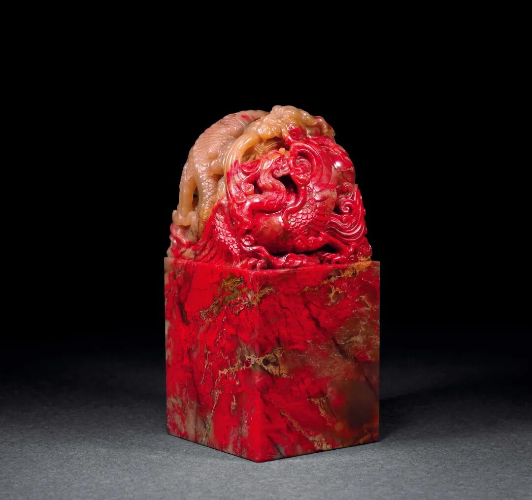昌化藕粉冻老坑鸡血龙凤印石