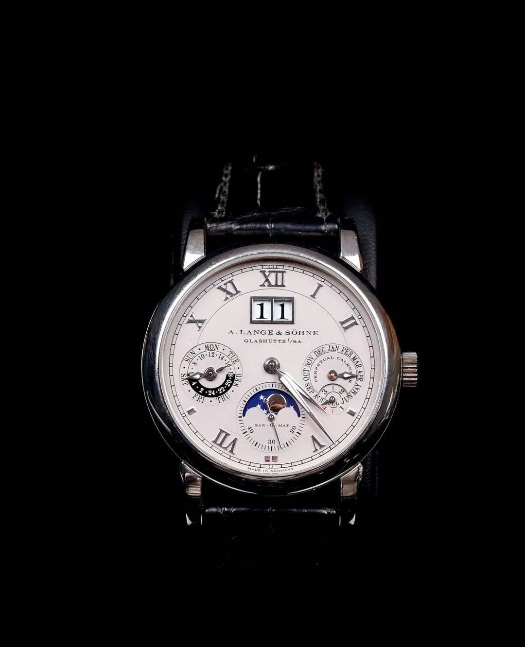朗格 萨克森PT950铂金万年历腕表,备数位日期、星期、月相、24小时、闰年显示及归零装置