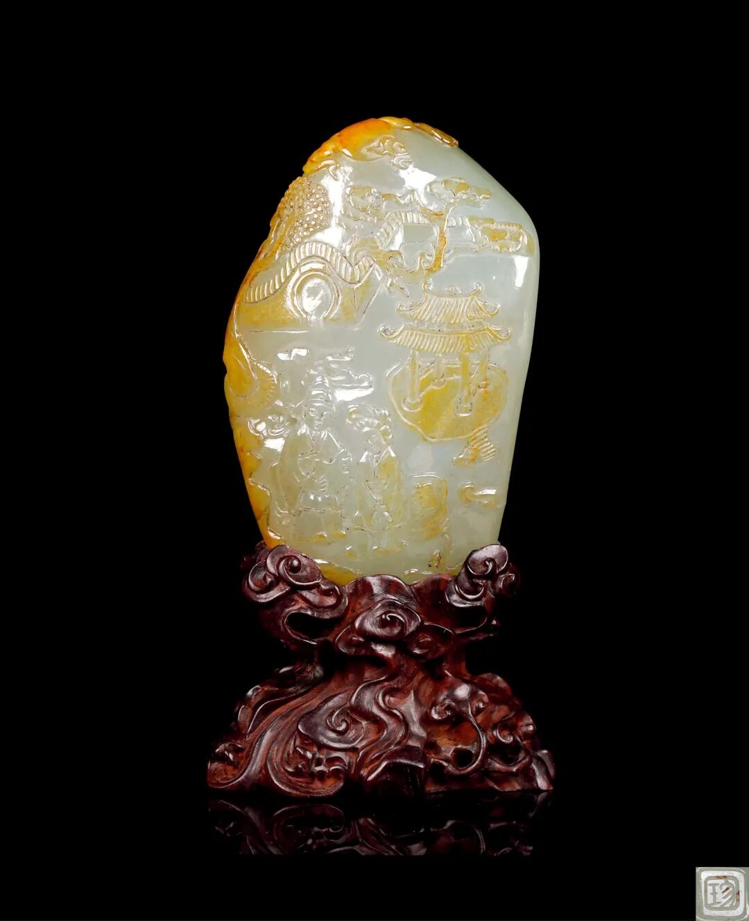 翡翠摆件西厢记山水人物图