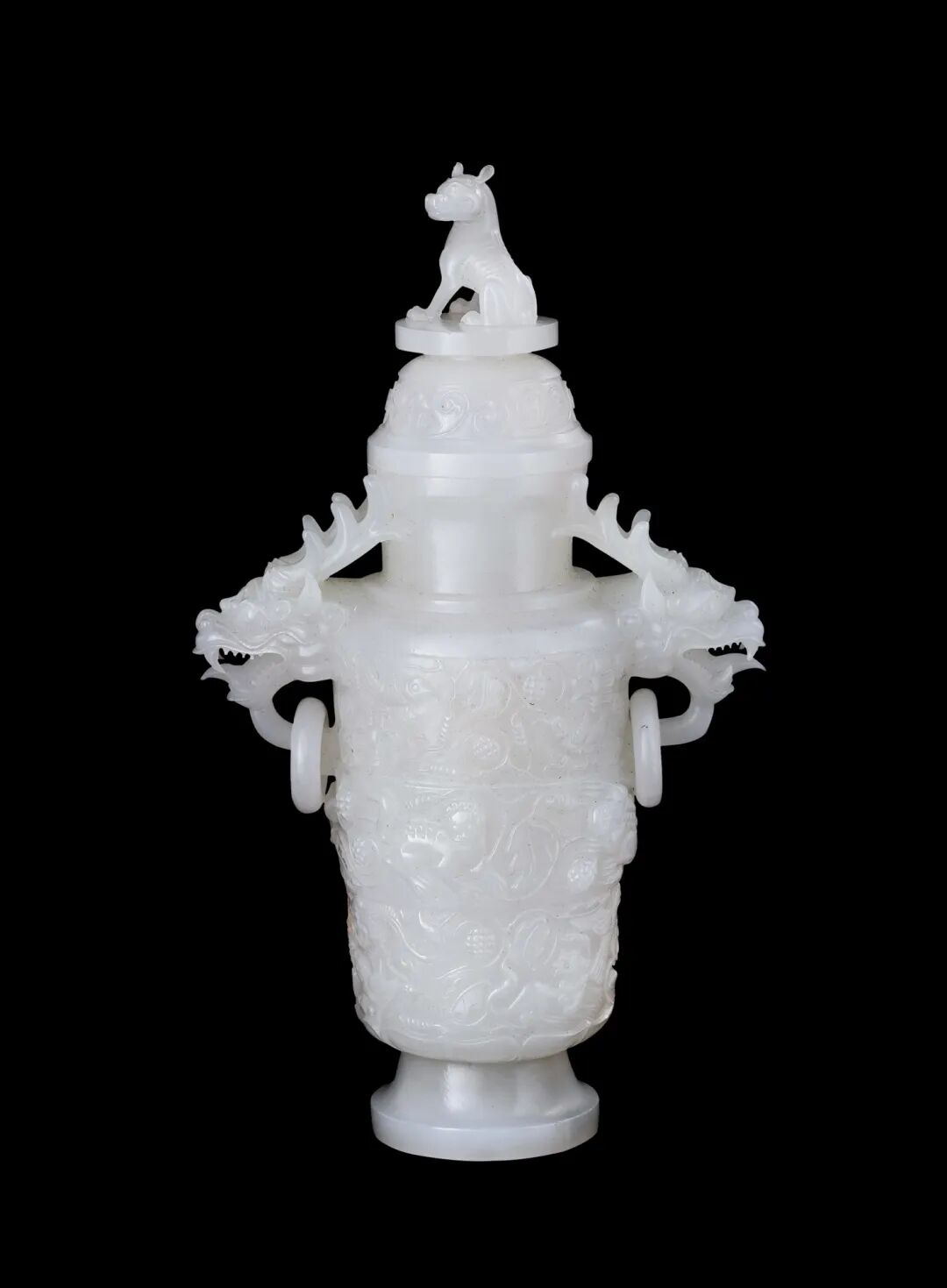 双龙耳天犬盖白玉瓶