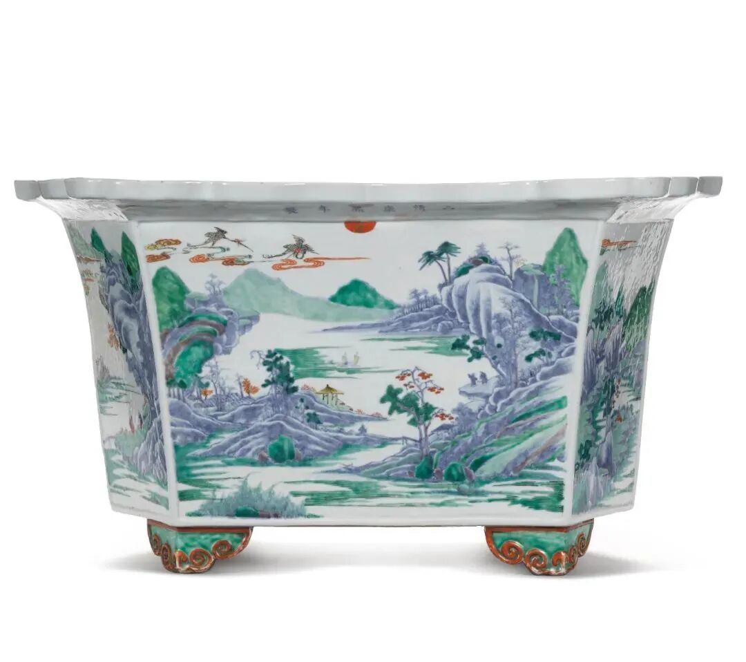 收藏界一直流传一句话“一粉彩顶三青花”,这也彰显粉彩瓷器受全球藏友喜爱的程度,本轮欧洲艺术周清雍正 粉彩过墙蝶恋花纹大盘以逾最低估价2.65倍26.5万英镑成交,清乾隆粉彩过枝秋水芙蓉蜻蜓图盘更是逾最低估价4倍24万英镑成交,再次验证粉彩瓷在艺术市场中的潜力。斗彩在拍场也是大家争夺的佳瓷,本轮欧洲亚洲艺术周法国私人旧藏的清康熙 斗彩山水人物图六方折沿花盆,这件完美呈现清代瓷器工艺成熟时期之作,以逾最低估价2倍的价格15.12万英镑喜人成交。五彩瓷在拍场也是大热门之一,2020年保利十五周年拍卖会上拍的清康熙五彩十二月神花神杯便曾以1.32825亿元人民币天价成交。本轮亚洲艺术周清康熙五彩桃花花神杯亦表现不俗,以逾最低估价3倍的价格6.3万英镑成交,此外清雍正 珊瑚红地五彩九秋同庆纹碗,寓意吉祥,也以15.1万英镑成交。亚洲艺术品专场