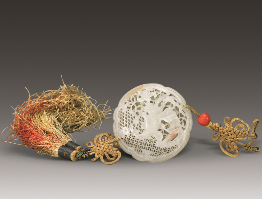 明·青白玉镂雕牵牛花三连带饰 北京故宫博物院