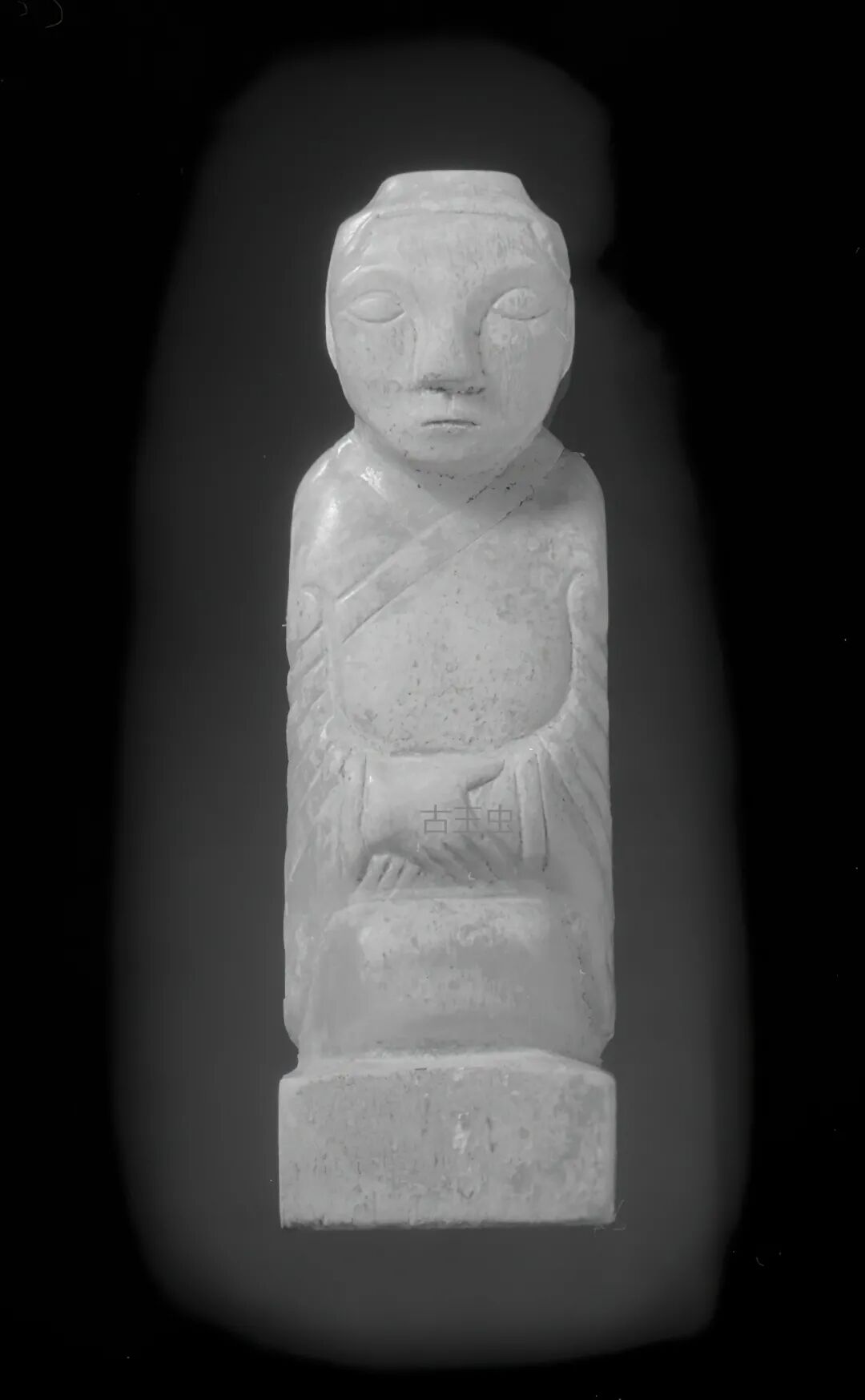 此像表现的是释迦牟尼佛未成佛前在雪山六年苦行的形貌;悉达多太子右腿横盘,左腿向前支起,赤裸双足,两手相叠置于左膝。头饰螺发,宽额凸起,大耳垂肩,满脸虬须。头略垂俯,长目微合,双唇紧闭,似在沉思冥想。身着坦右臂衲衣,衣纹简洁,显得较为厚重。在袒露的身体右侧可看到嶙嶙可数的肋骨,特别是从身后可以看到完全暴露在外面节节可数的脊椎骨和肋骨,这已不是用骨瘦如柴所能表达。此像生动地刻画出了经文中“脊骨连露如筇竹节”的六年雪山苦行形貌。