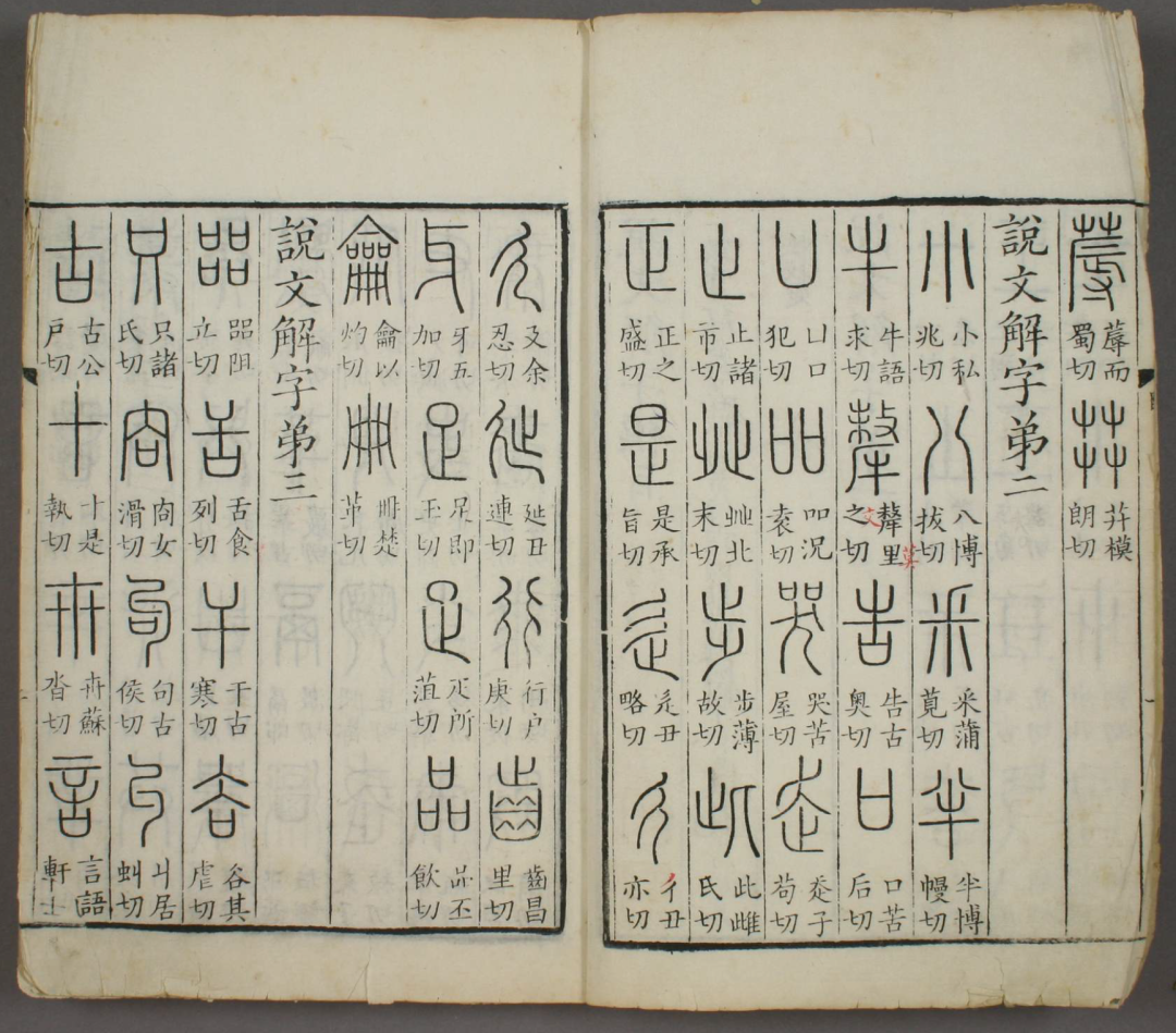 严:再回到汲古阁本《说文解字》,那样的写手,肯定是他们专门雇用的,他们的字,没有什么风格,但写得稳当、悦目。刻工要刻好他们的字,也不容易,比那些仿宋体难多了。水印木刻是一个有趣的行业,作为一种单纯的印刷术和复制术,它也有不同趣味。就复制水墨画来说,好像上海朵云轩和北京的荣宝斋就不一样,荣宝斋追求尽可能地忠实原作,即保持“笔墨”的意味,朵云轩则保持水印,也就是“版”的特点。但在做具体作品时,还是有些侧重,比如朵云轩的《石涛花卉》就笔墨味浓些,而沈周的《两江名胜》就版味深些。这会涉及到分版和印刷等种种工艺流程。今天有了高清印刷工艺后,水印木刻这种技术就有点显得吃力不讨好了。说到迁就,我想到了陈老莲。他的绘画和版画几乎是两种风格,无论是造型还是用笔。他显然是考虑到了木刻的特点,做了这样的处理。