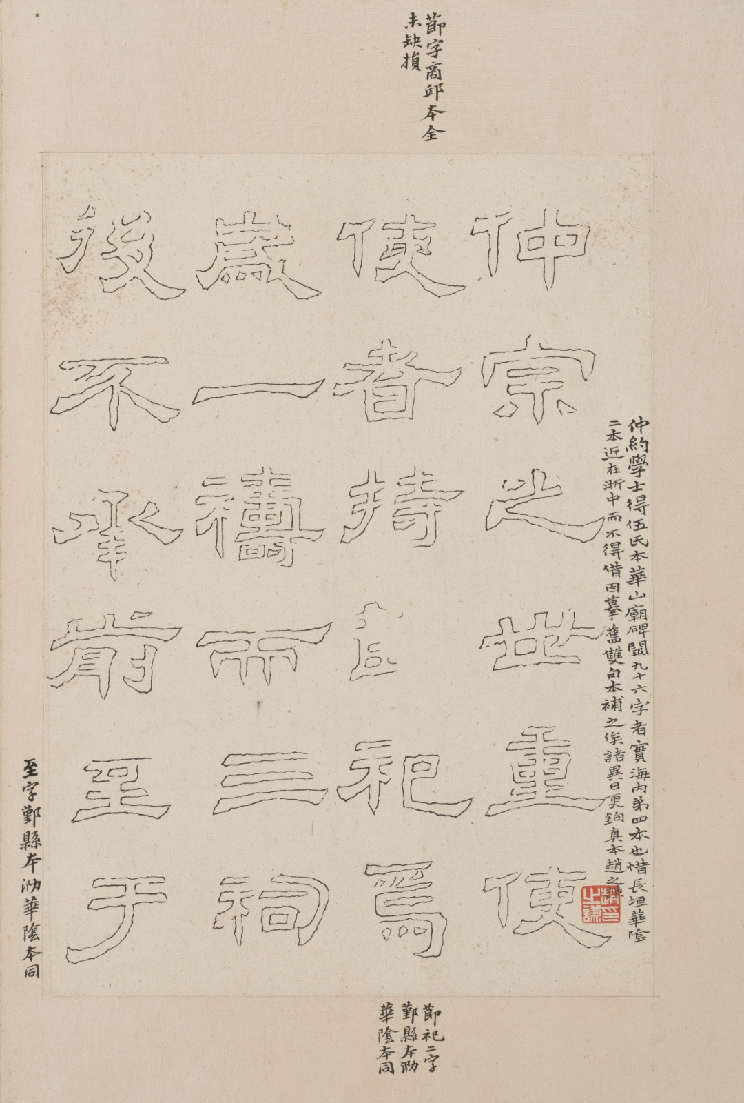 严:周小英的字,粗看上去是帖的味道,其实还是碑的底子,柔中有刚,用笔很刚毅,虽然也有一些牵丝映带,但都很平实稳健。这也许是她版本书看得多的缘故吧,宋版书中的那些笔画,既非碑、亦非帖,想必她从中吸收了不少养分。这些版本书中的“刻字”,也一般不会入现在书法家的法眼。从她的批校中,也常常会看到一些绿色和蓝色的字,觉得与书的气息很匹配。细想起来,批注书籍要比拓本更难。因为拓本版心是大面积的黑色,很稳重,批注不论是黑色还是红色,都不会抢眼。当然也有优劣雅俗之别,我们眼前的小玲珑山馆藏《华山碑》就是上乘品,各家的书法都精湛,尤其是赵之谦的小字行书,细微灵动,真是令人赞叹,即便放大数倍,依然精神饱满。书籍的版面白多黑少,批注和题跋的字形过大或墨色过重,都会影响正文的阅读。我看周小英在有些书籍上的批校,字体大小和色彩浓淡都非常讲究,讲究它们之间的变化和协调。在这方面,我想你们实际上也是对书籍的题跋史有一些整体的思考吧?