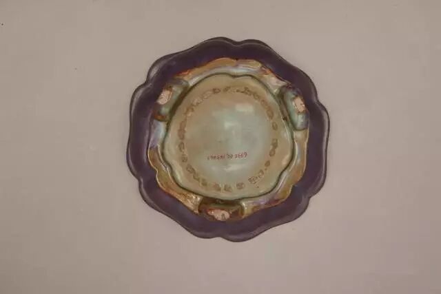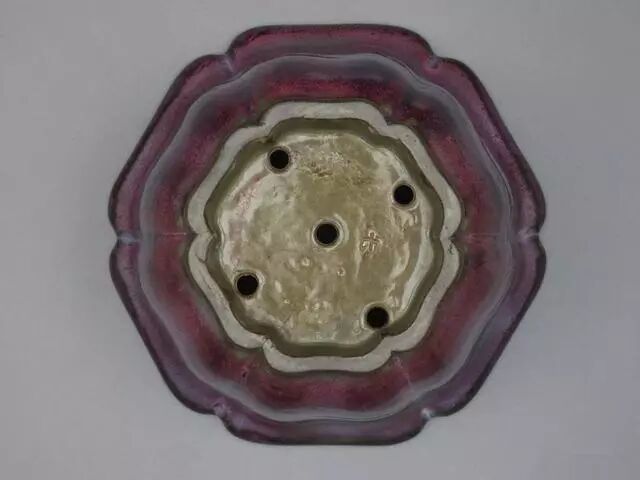 钧窑玫瑰紫釉菱花式三足花盆托 北宋颜色釉钧窑