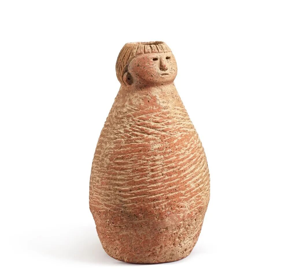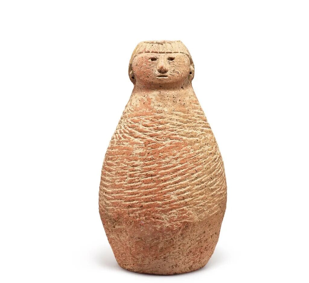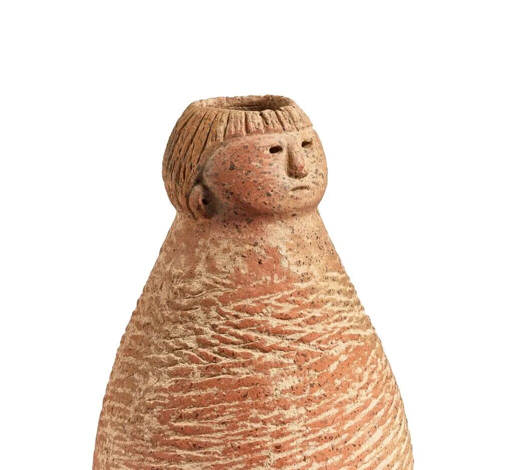 |仰韶文化 半坡至庙底沟类型 红陶人首瓶|